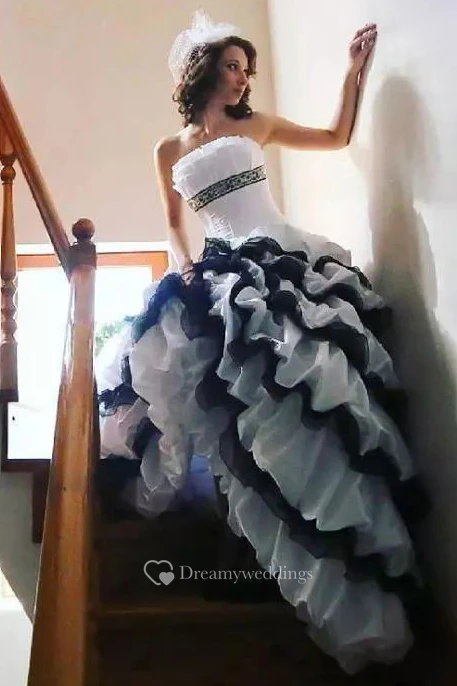 A-Line Taffeta Strapless Sleeveless High-Low Wedding Dress with Cascading Ruffles