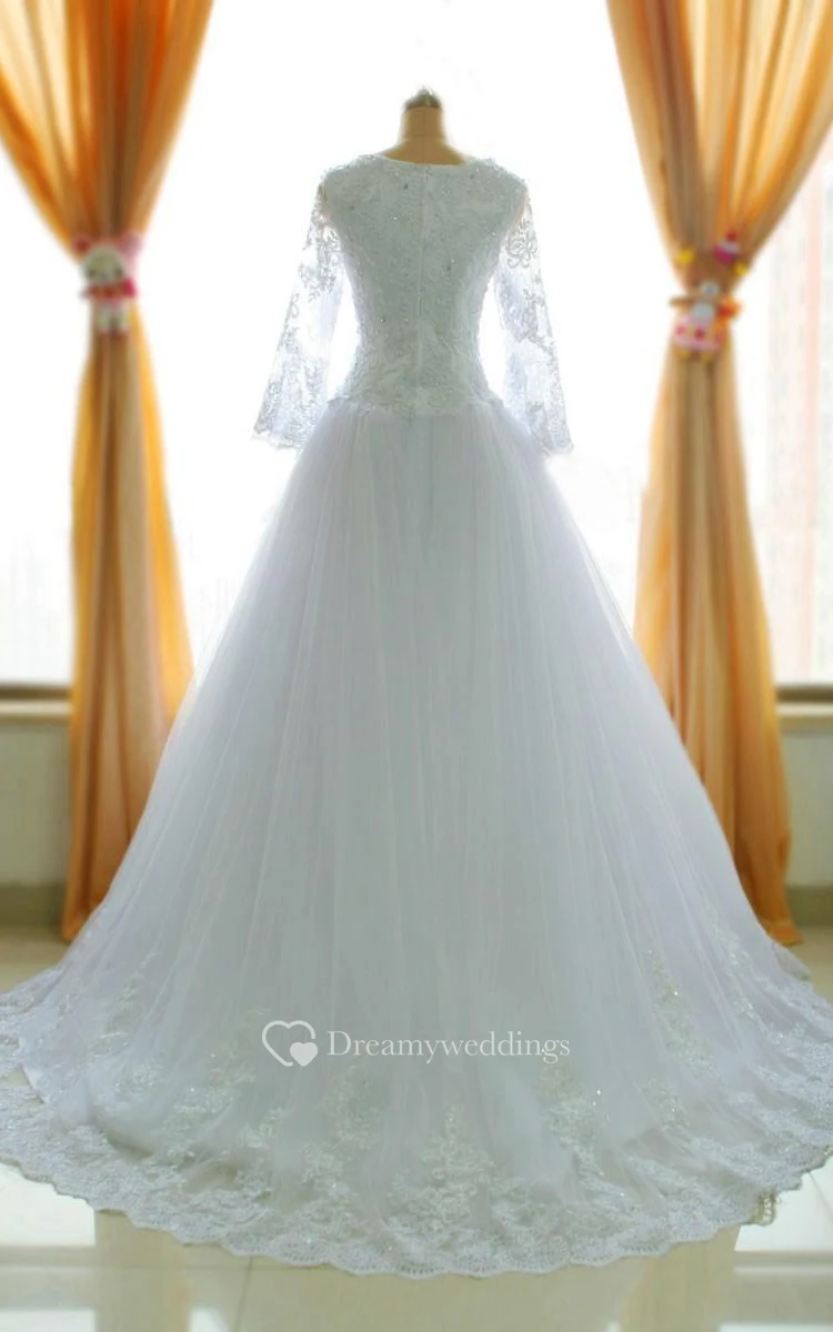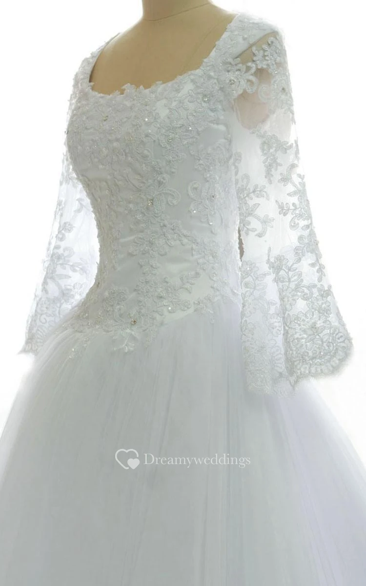 A-Line Tea-Length Off-The-Shoulder One-Shoulder Square Long Sleeve Beading Tulle Lace Sequins Satin Dress