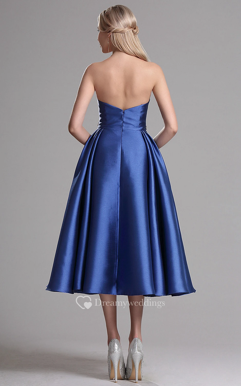 A-Line Tea-Length Strapless Sleeveless Satin Flower(S) Zipper Dress