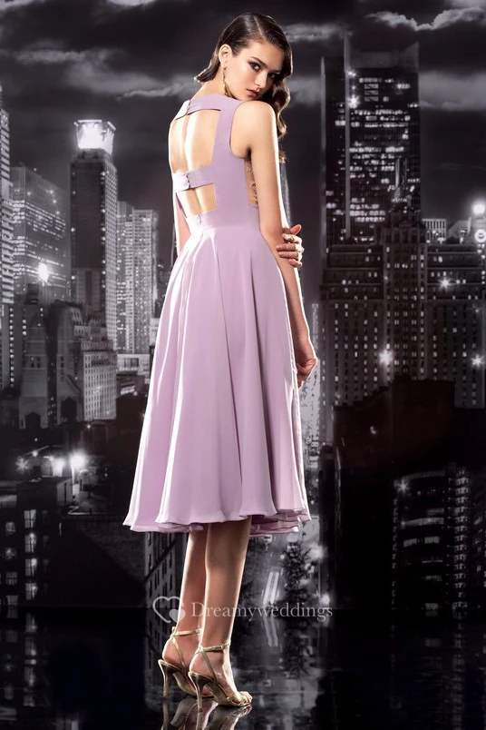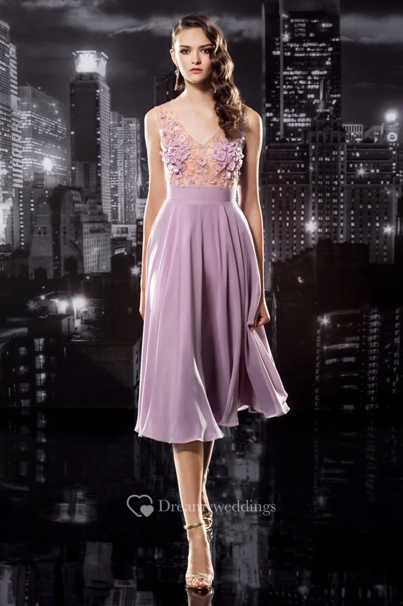 A-Line Tea-Length V-Neck Sleeveless Jersey Keyhole Dress With Appliques