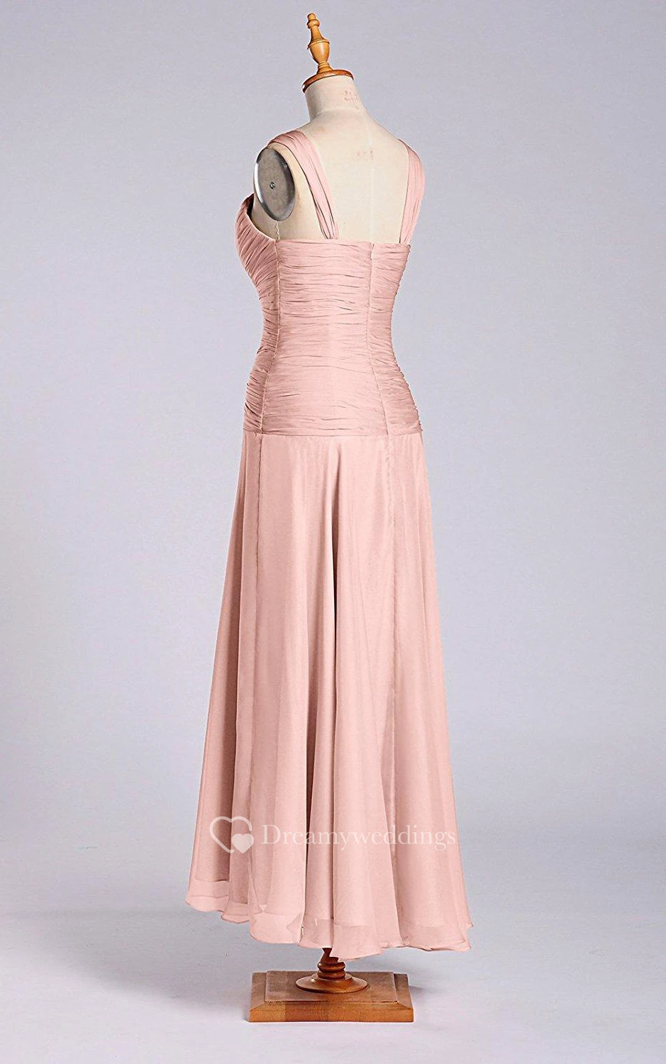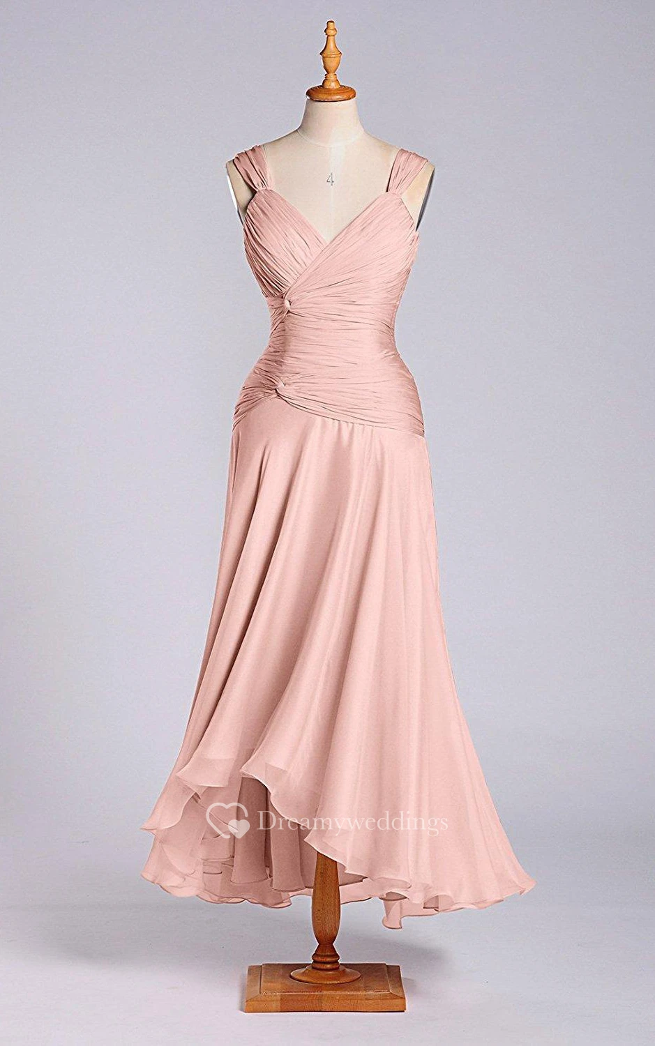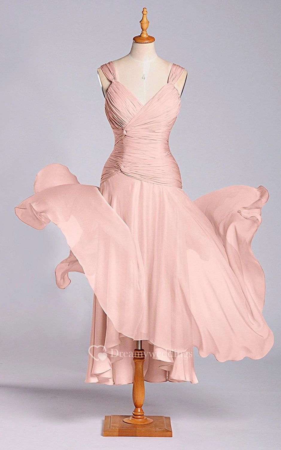 A-line Tea-length Zipper Chiffon Dress with Ruched Bodice