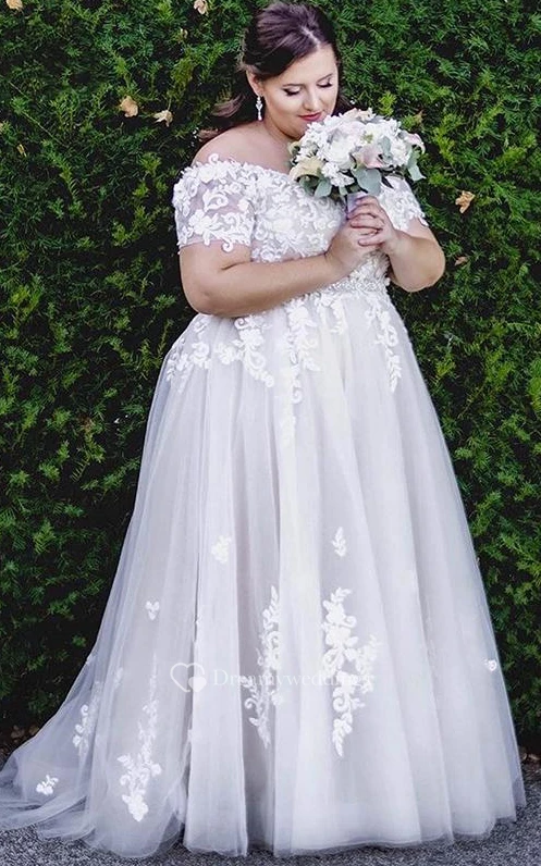 A Line Tulle Off-the-shoulder Casual Wedding Dress with Appliques