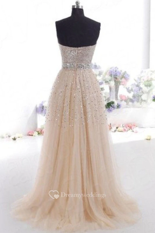 A-Line Tulle Sequins Sweetheart Sleeveless Zipper Dress