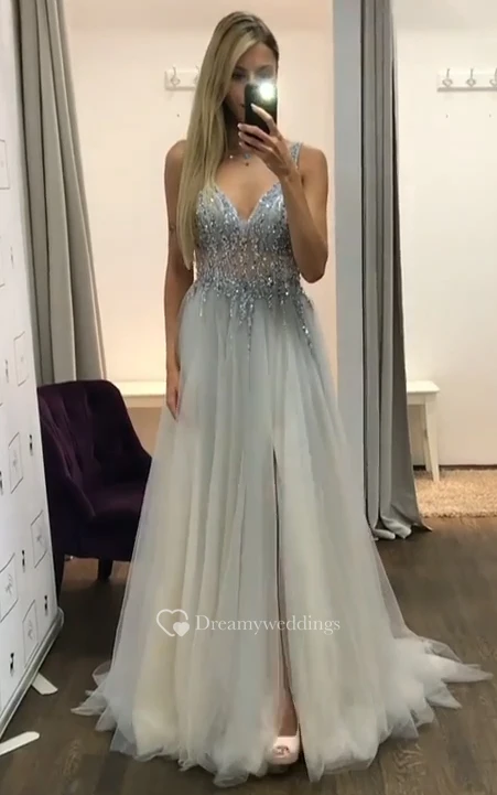 A-Line Tulle V-neck Sleeveless Zipper Illusion Dress