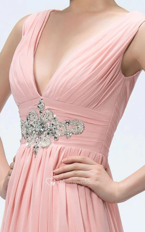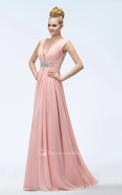 A-Line V-Neck Appliques Beading Pretty Prom Dress