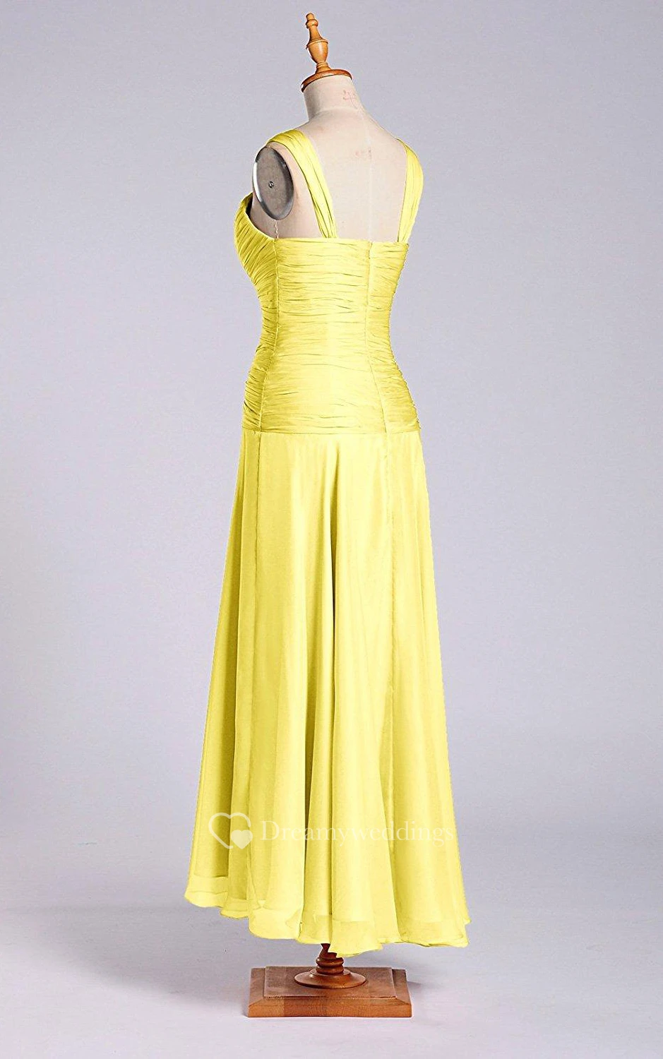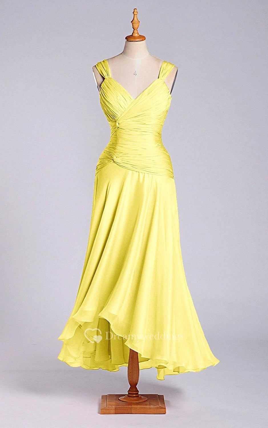 A-line V-neck Chiffon Dress with Ruching Embelishment