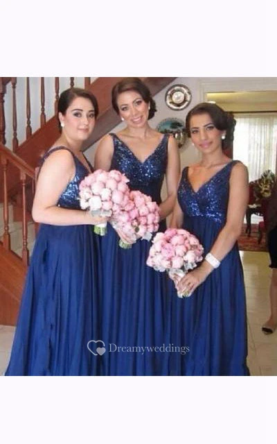 A-line V-neck Chiffon Sequins Dress with Pleats