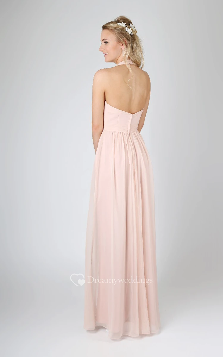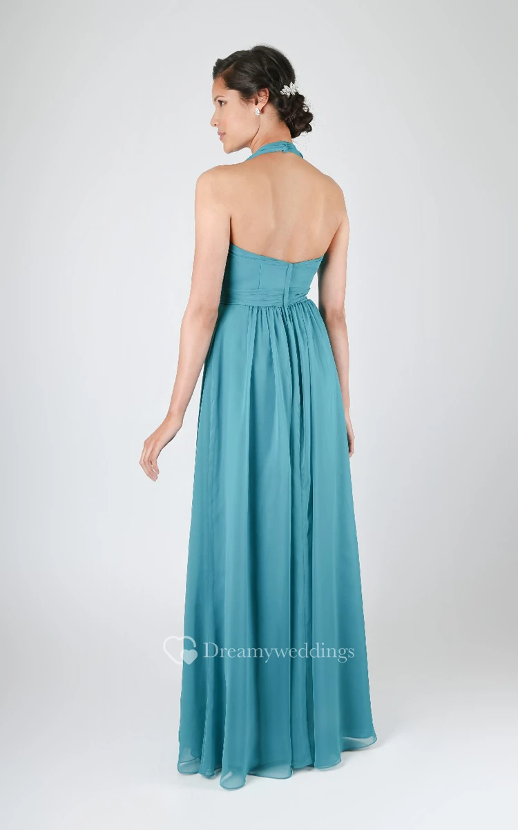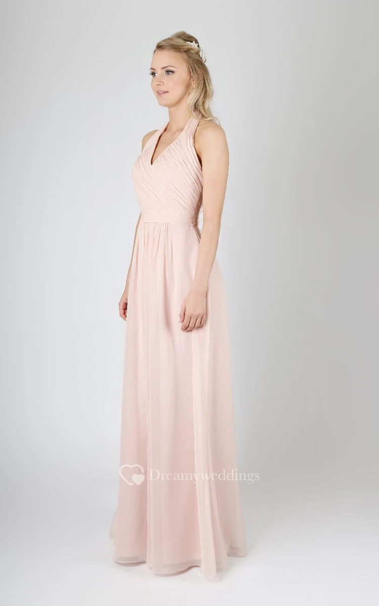 A-Line V-Neck Long Pleated Chiffon Classical Dress