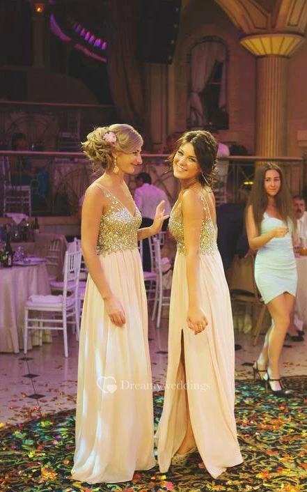 A-line V-neck Sleeveless Bell Beading Split Chiffon Dress