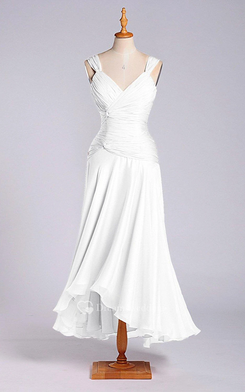 A-line V-neck Tea-length Dress with Dropped Detail