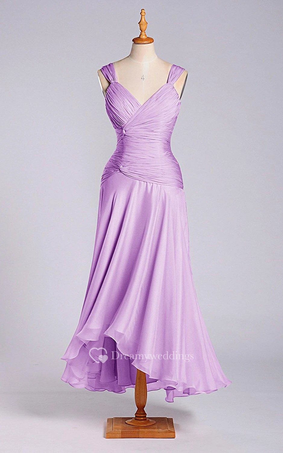 A-line V-neck Tea-length Dropped Chiffon Dress