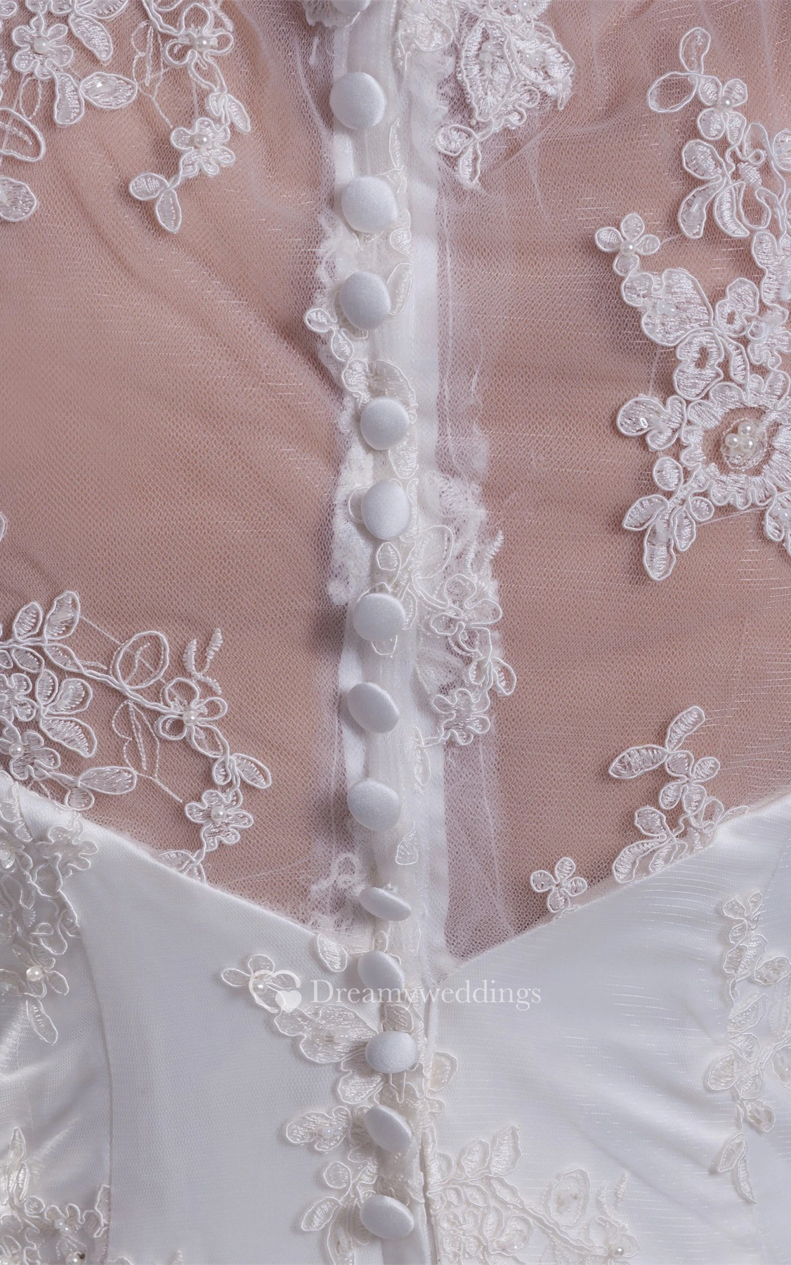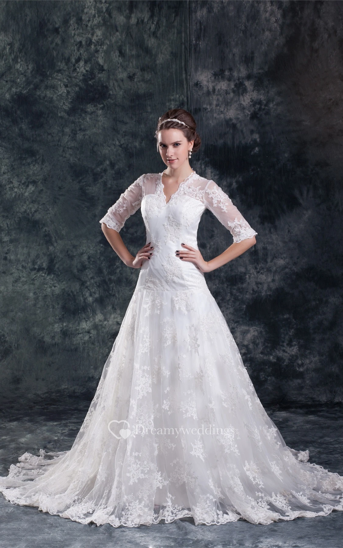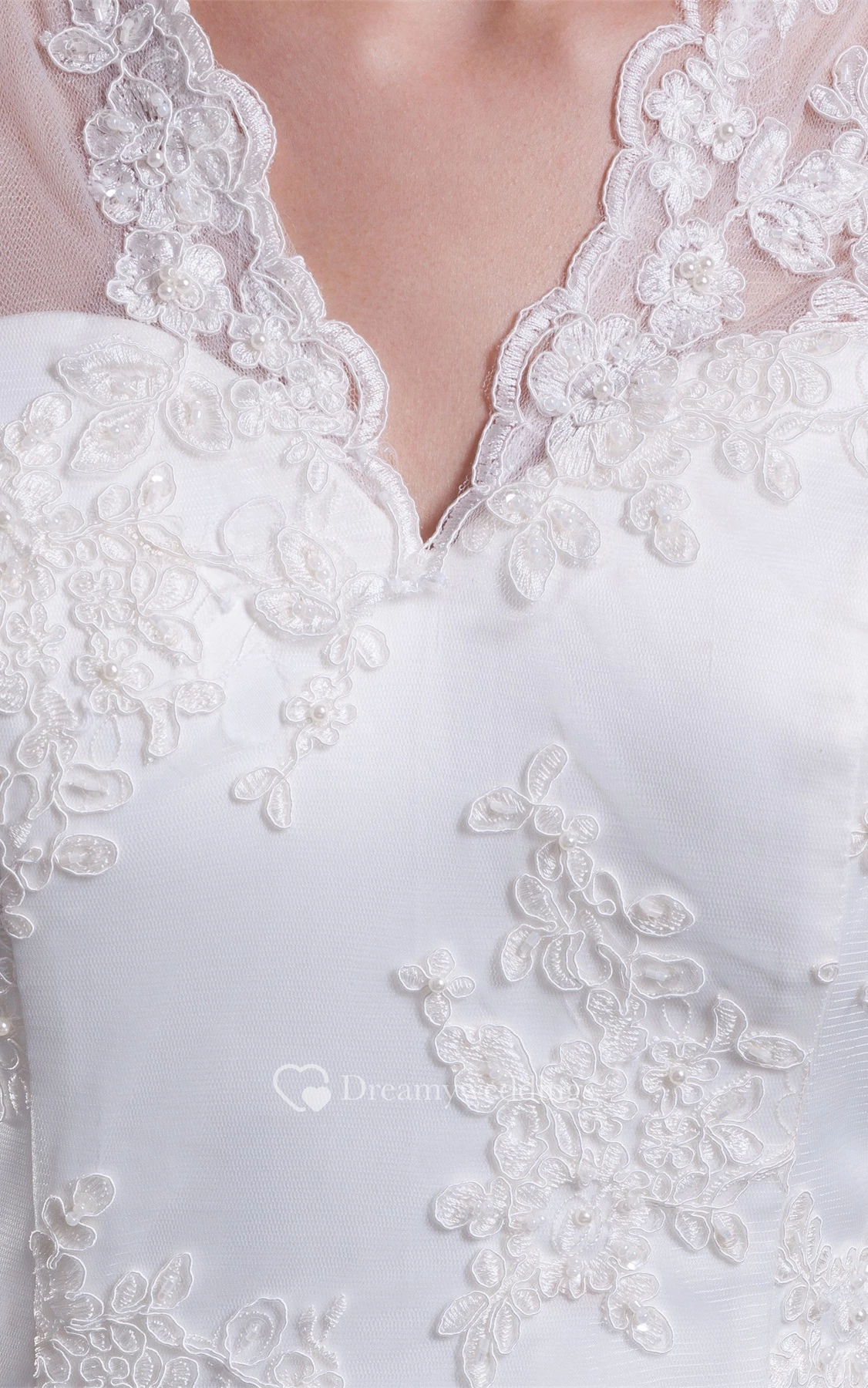 Adorable Satin Appliqued a Line V Neck Half Short Sleeve Wedding Dresses