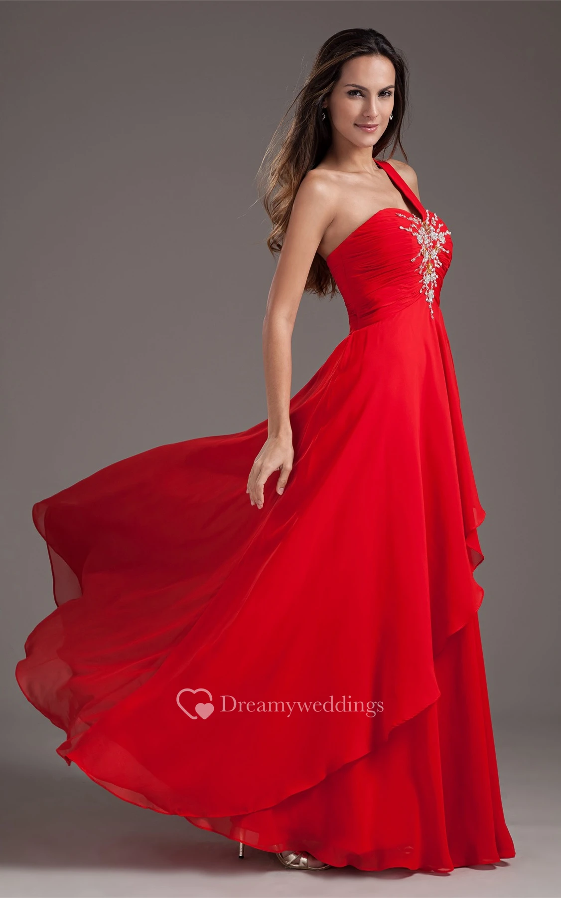 Alluring Sleeveless One Shoulder a Line Chiffon Satin Special Occasion Dresses