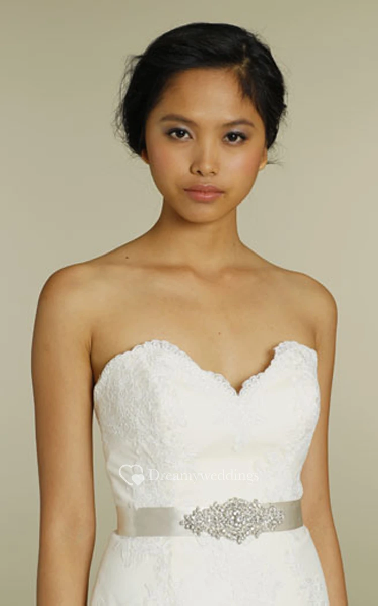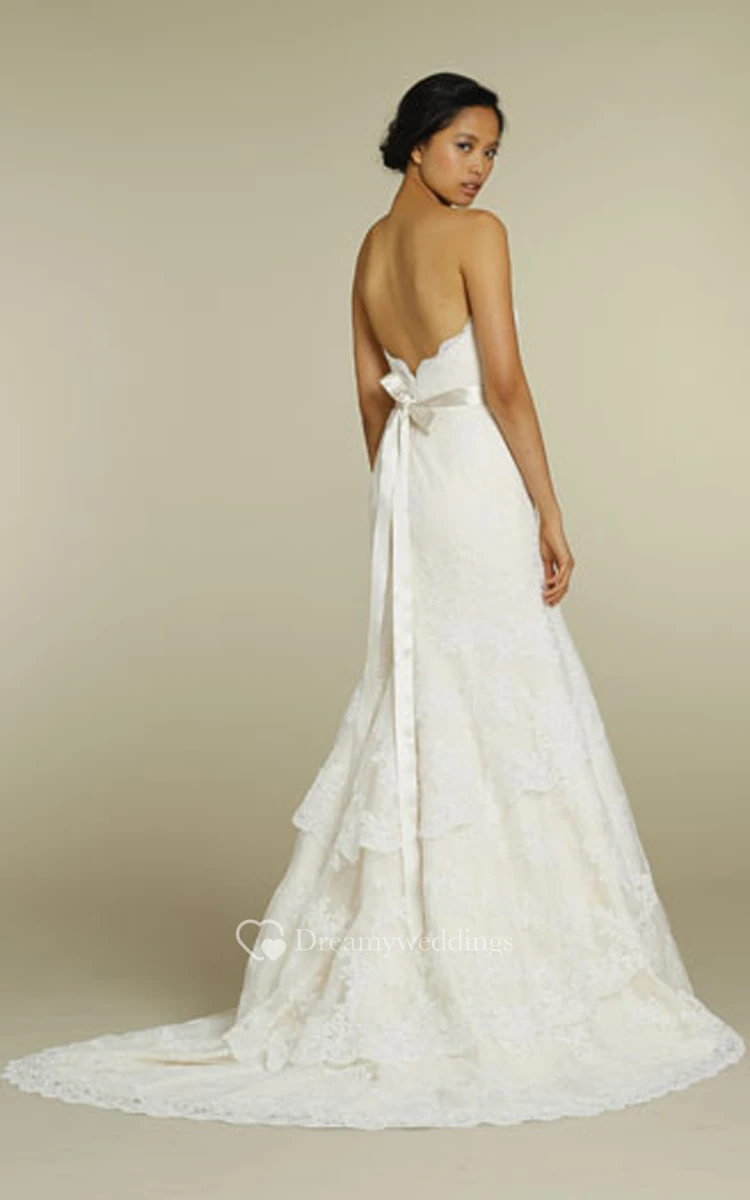 Alluring Sweetheart Neckline Tiered Lace Dress With Satin Ribbon
