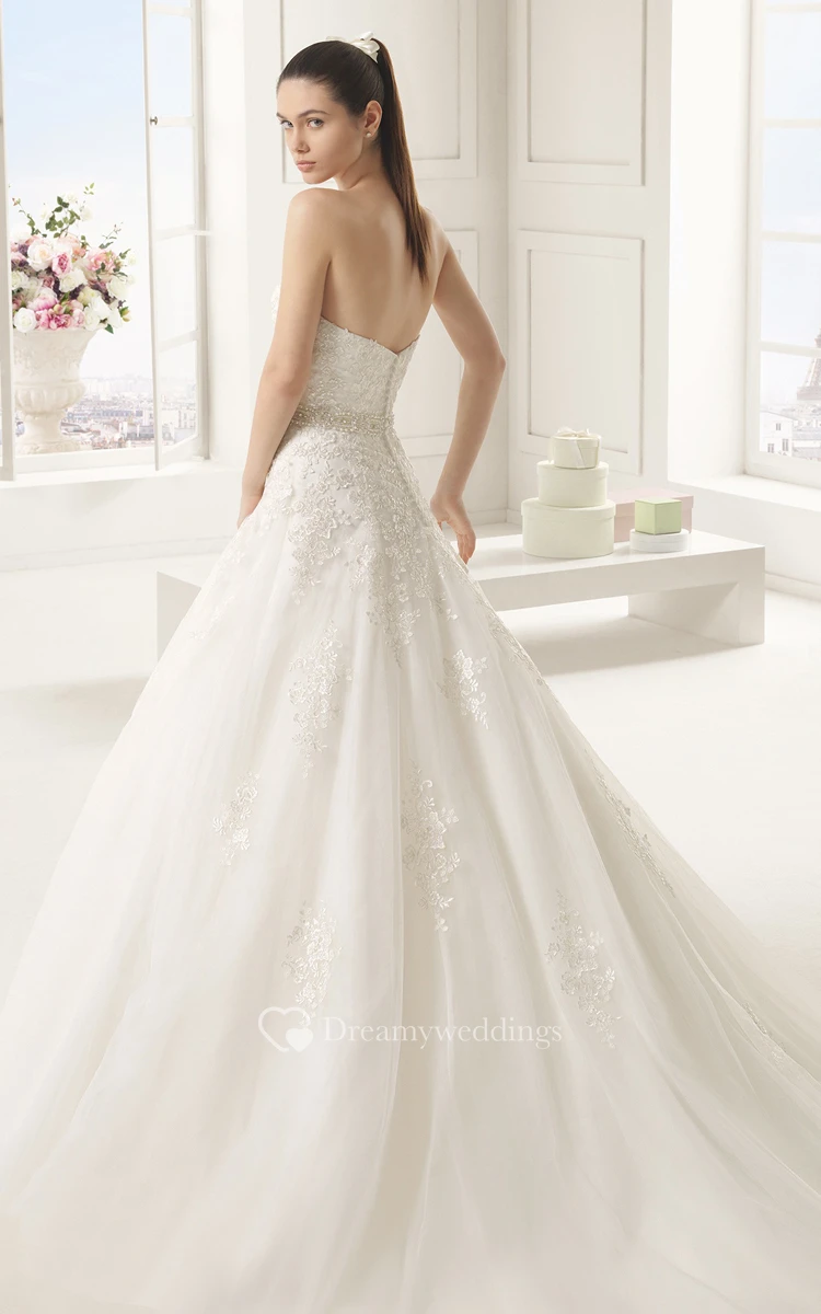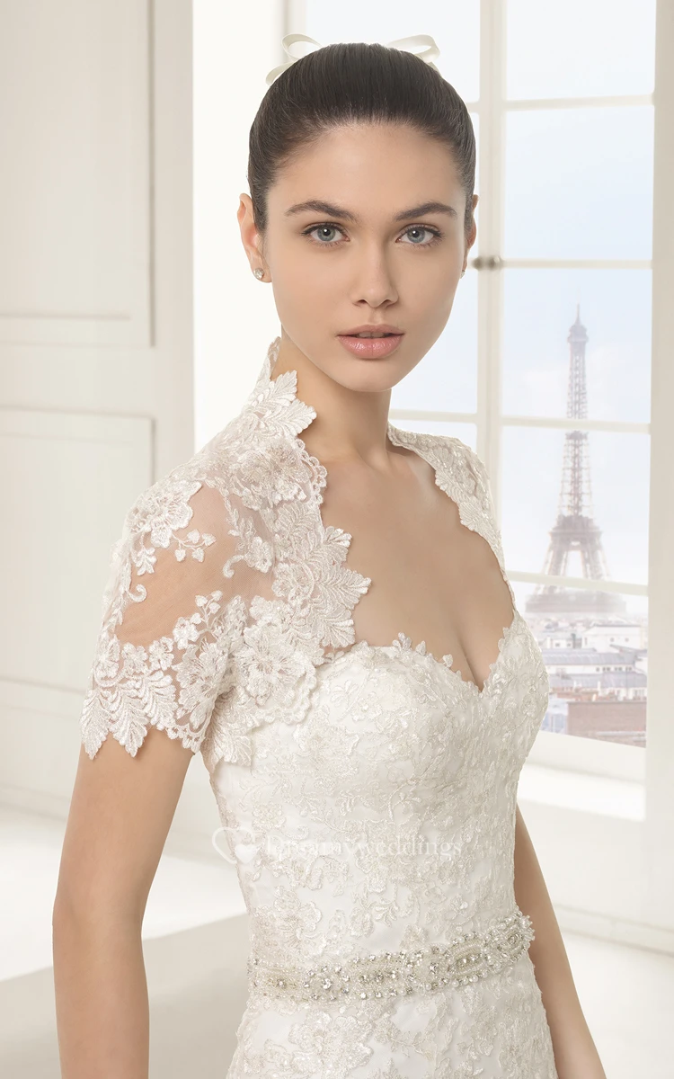 Amazing Laced Bodice Straplees Gown With Cap-Sleeved Cape