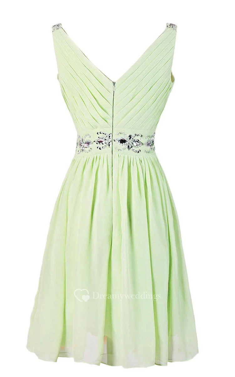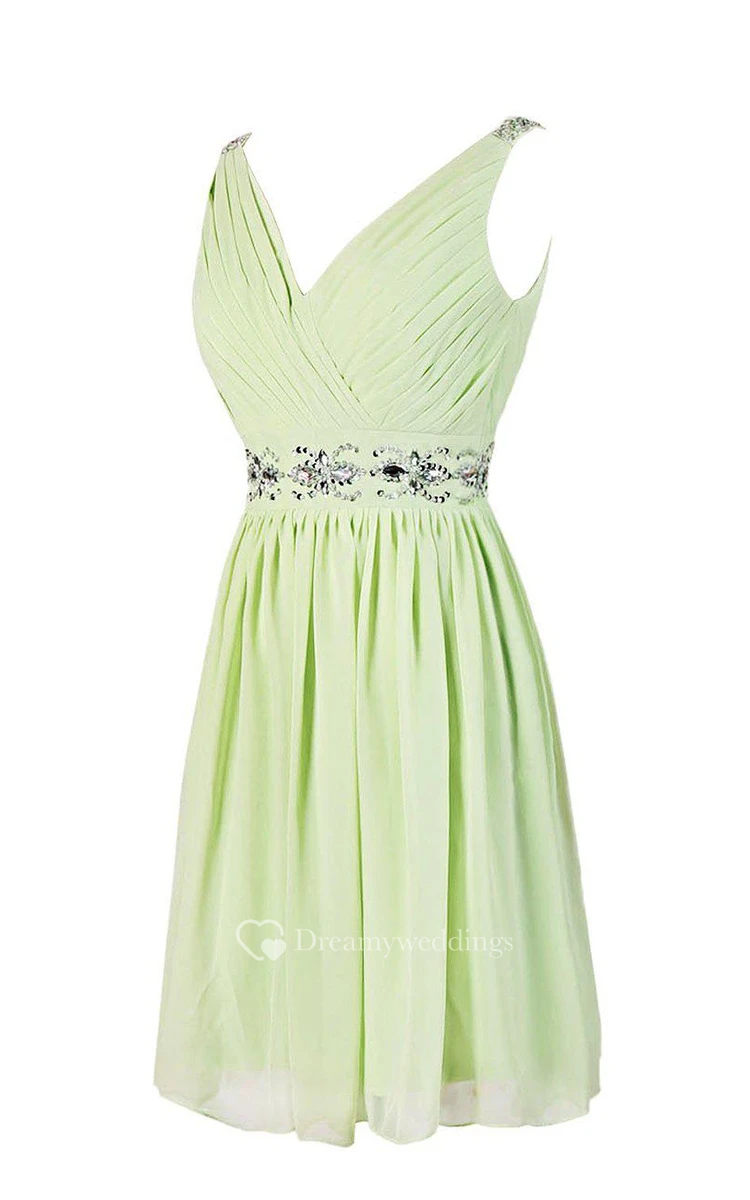 Amazing Sleeveless Chiffon Short Dress With Beaded Waist