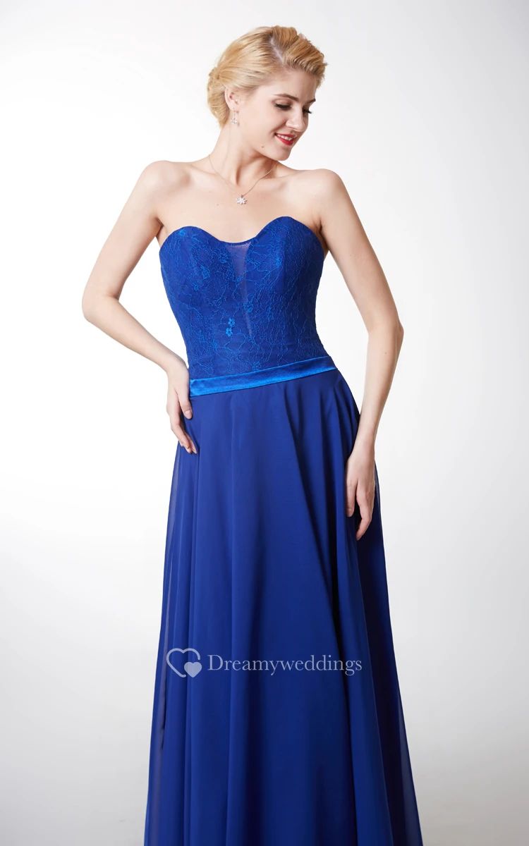 Ambitious Sweetheart Long Chiffon Dress With Lace-top