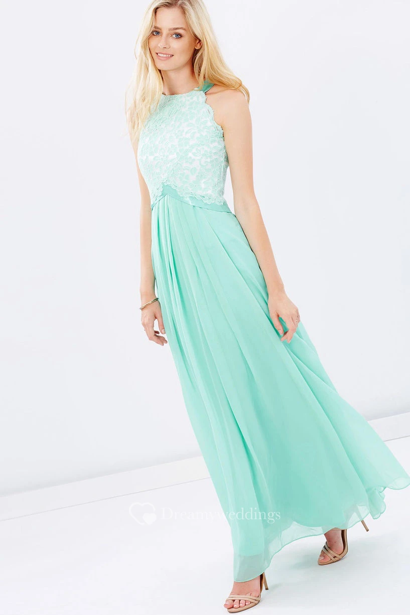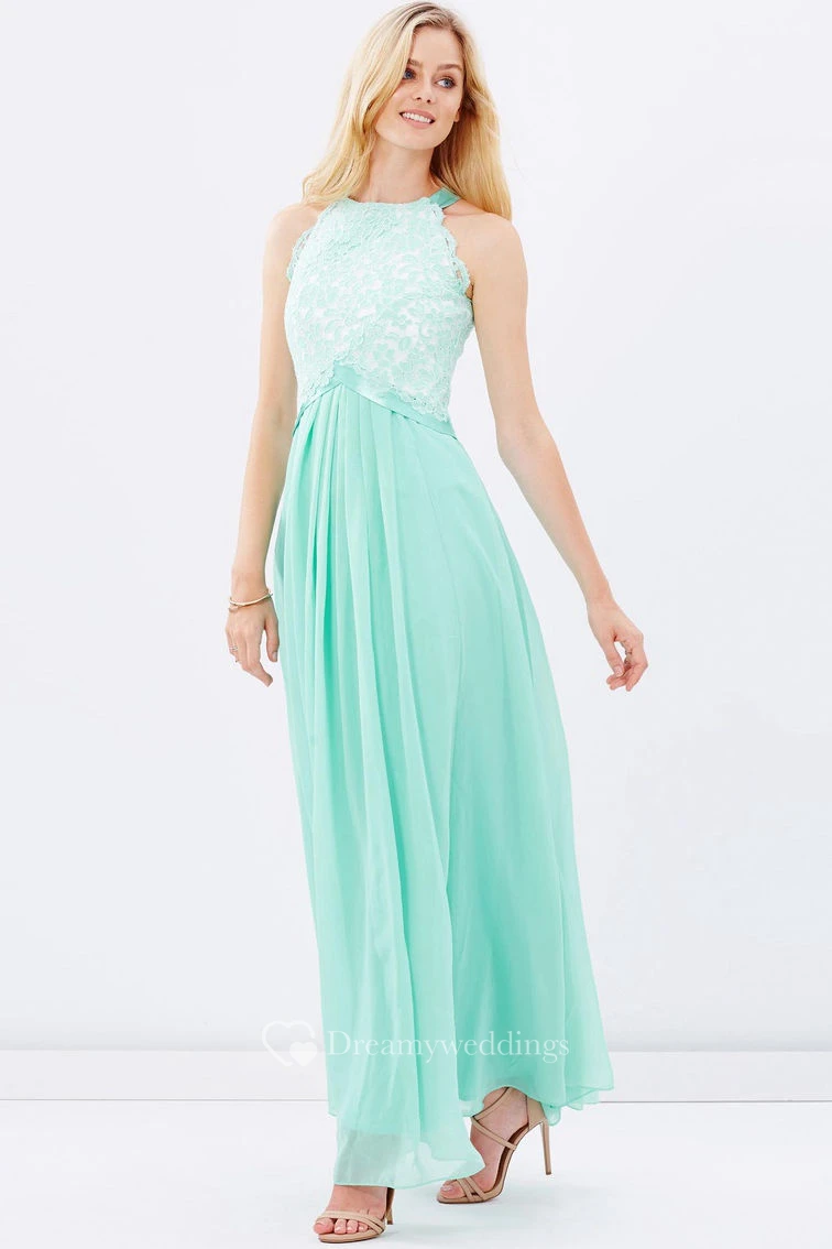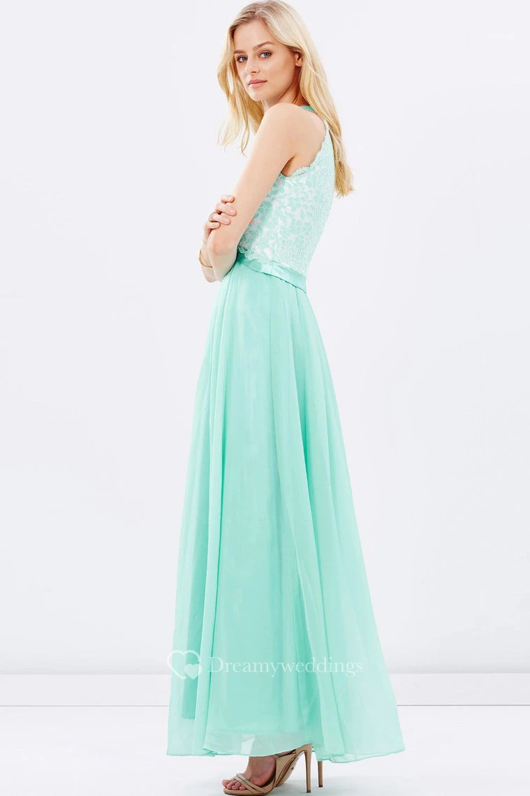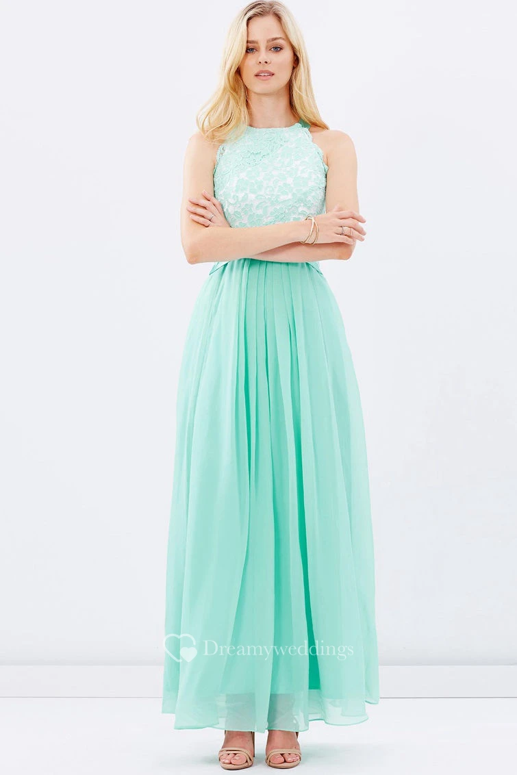 Ankle-Length Appliqued Sleeveless Scoop Neck Chiffon Bridesmaid Dress
