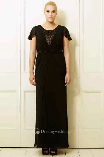 Ankle-Length Beaded Poet-Sleeve Scoop-Neck Chiffon Plus Size Prom Dress With Draping