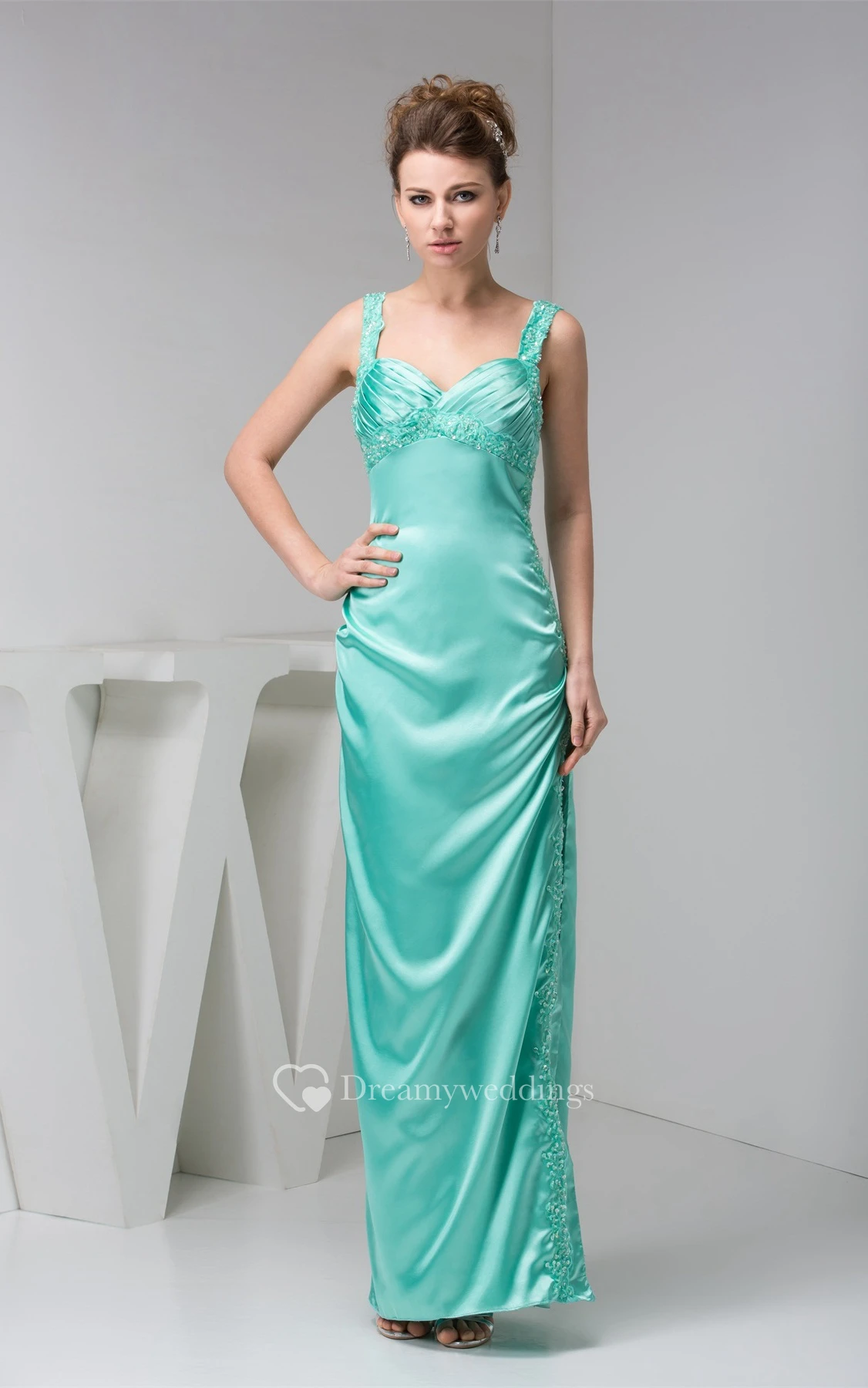 Ankle-Length Satin Front-Split Beading and Dress With Stress