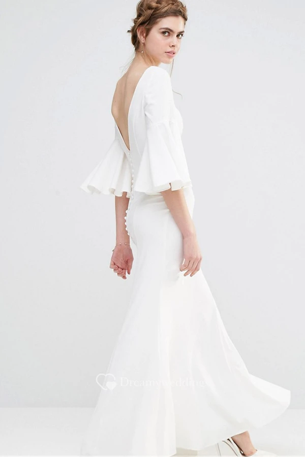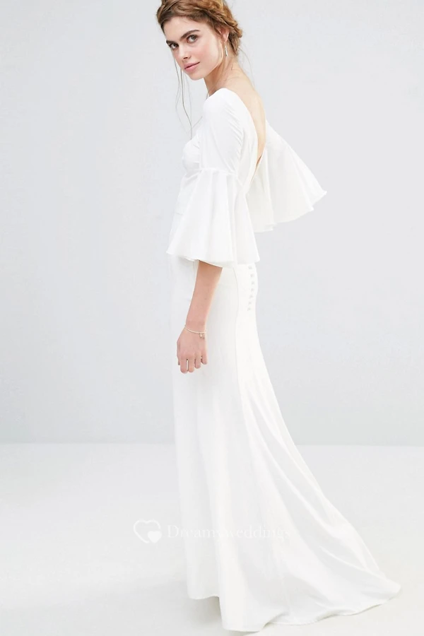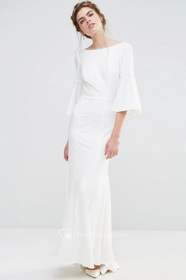 Ankle-Length Sheath Puff Sleeve Bateau Neck Chiffon Bridesmaid Dress