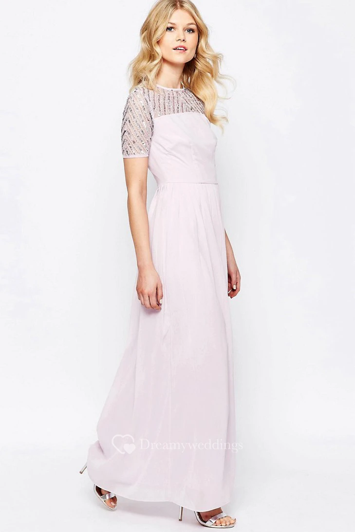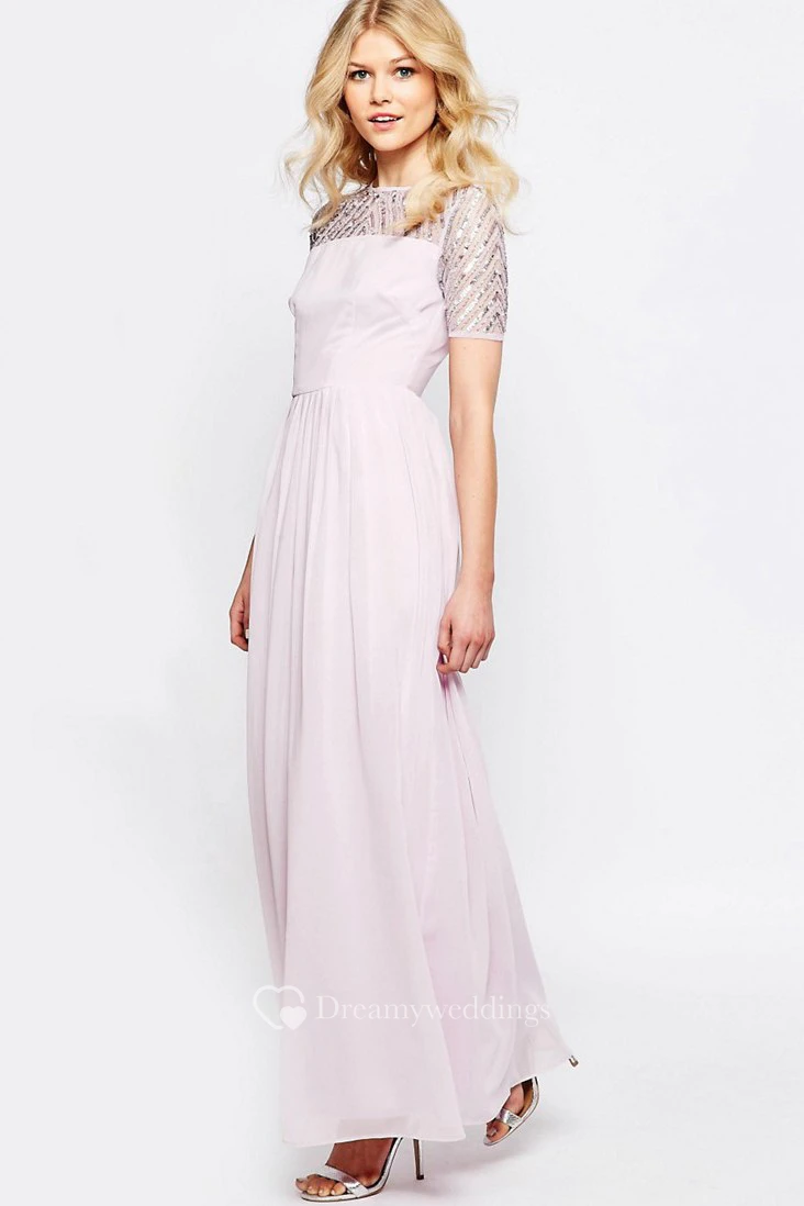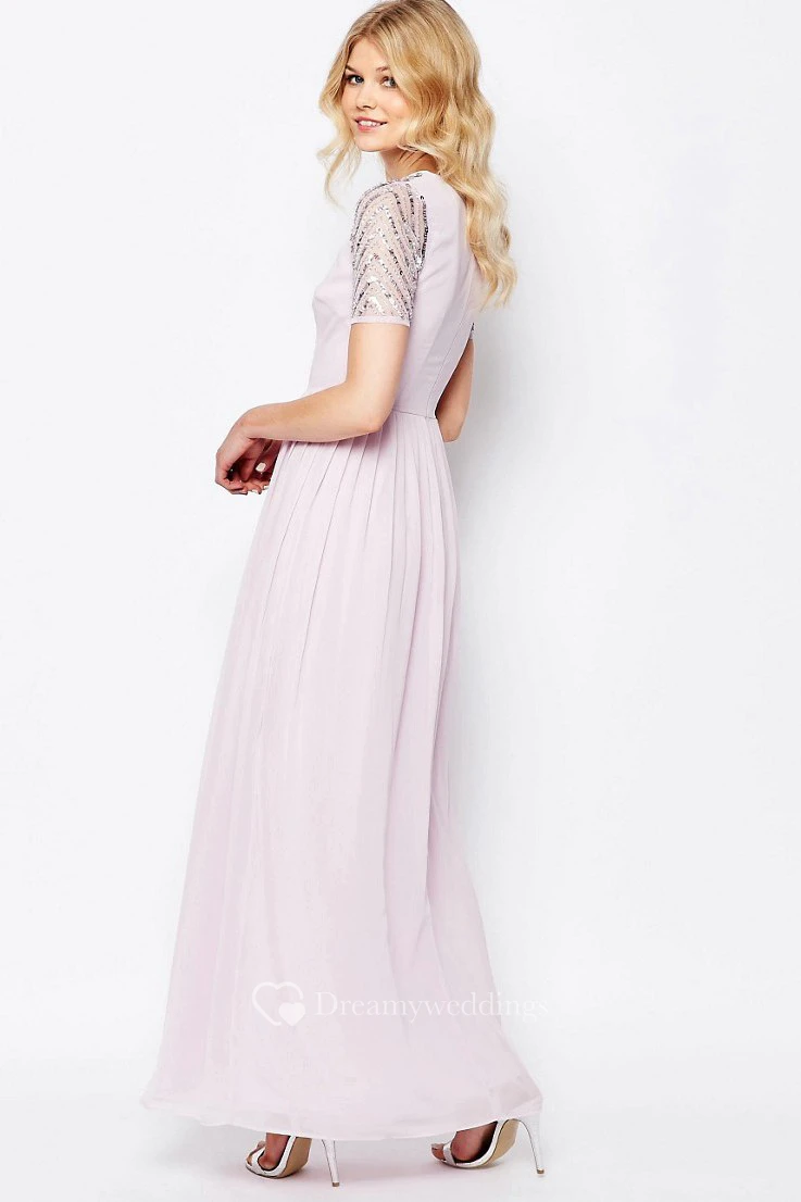Short Sleeve Pleated Scoop Neck Chiffon Bridesmaid Dress