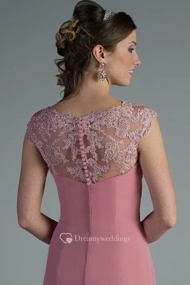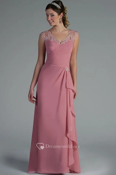 Appliqued V Neck And Cap Sleeve Chiffon Long Mother Of The Bride Dress With Side Drape
