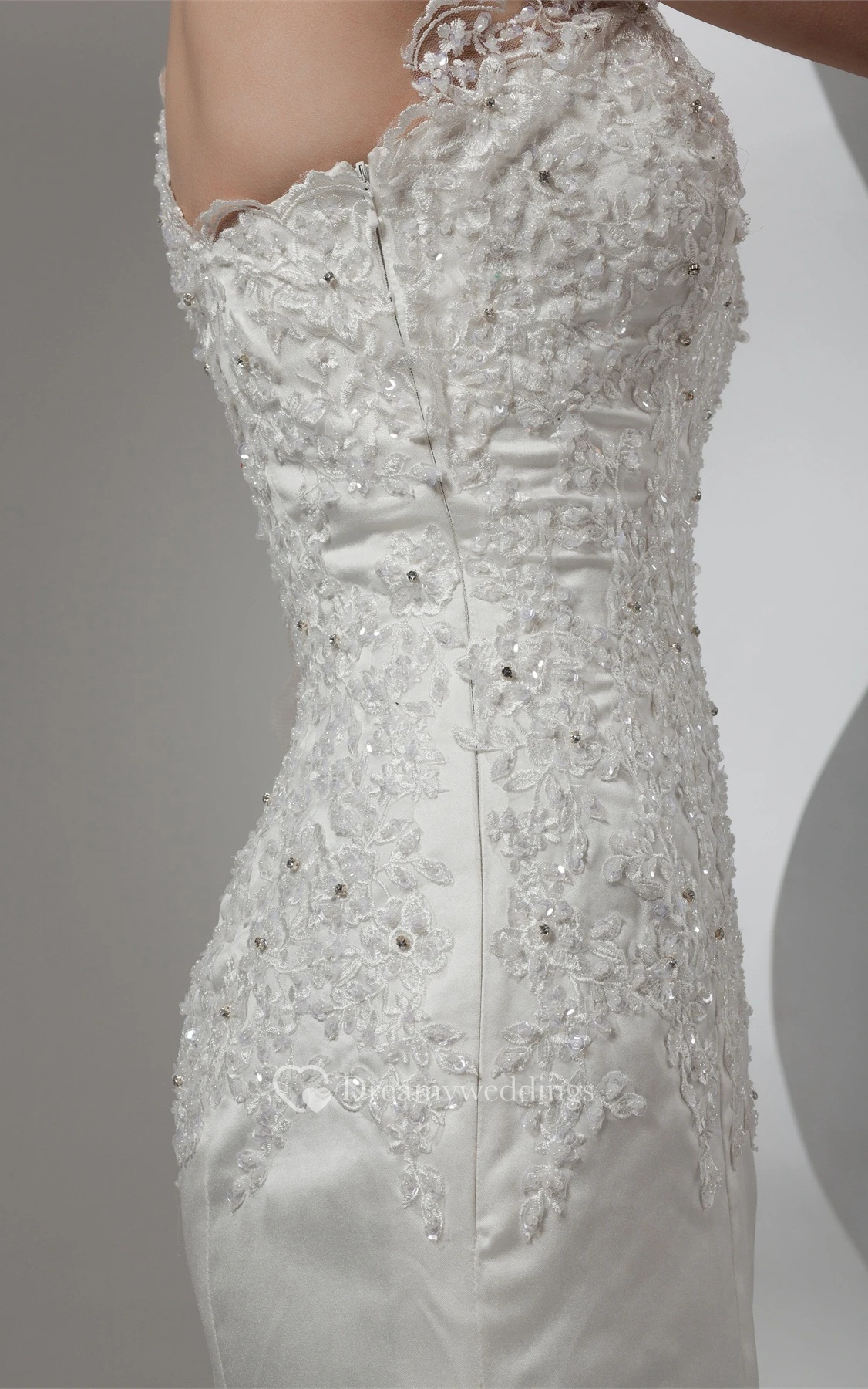 Asymmetrical Appliqued Mermaid Gown With Illusion One Sleeve