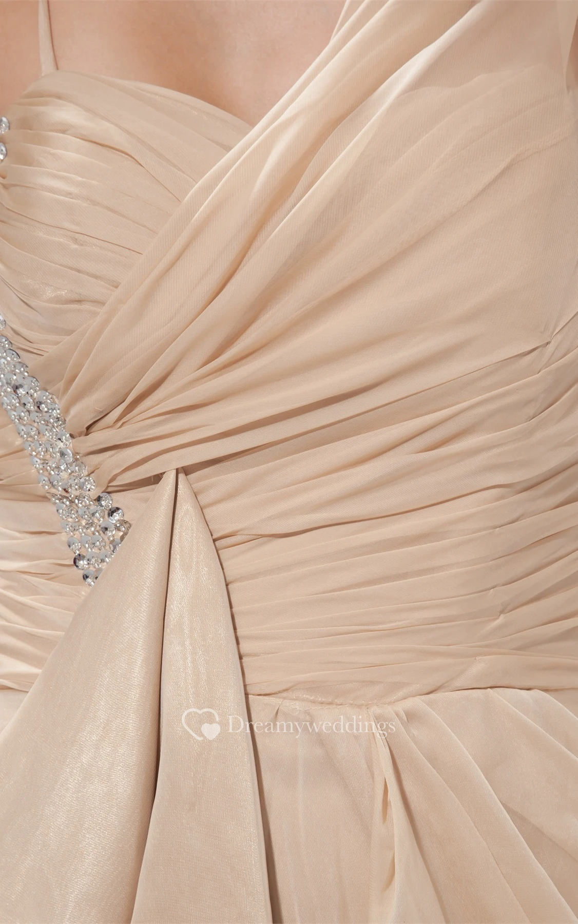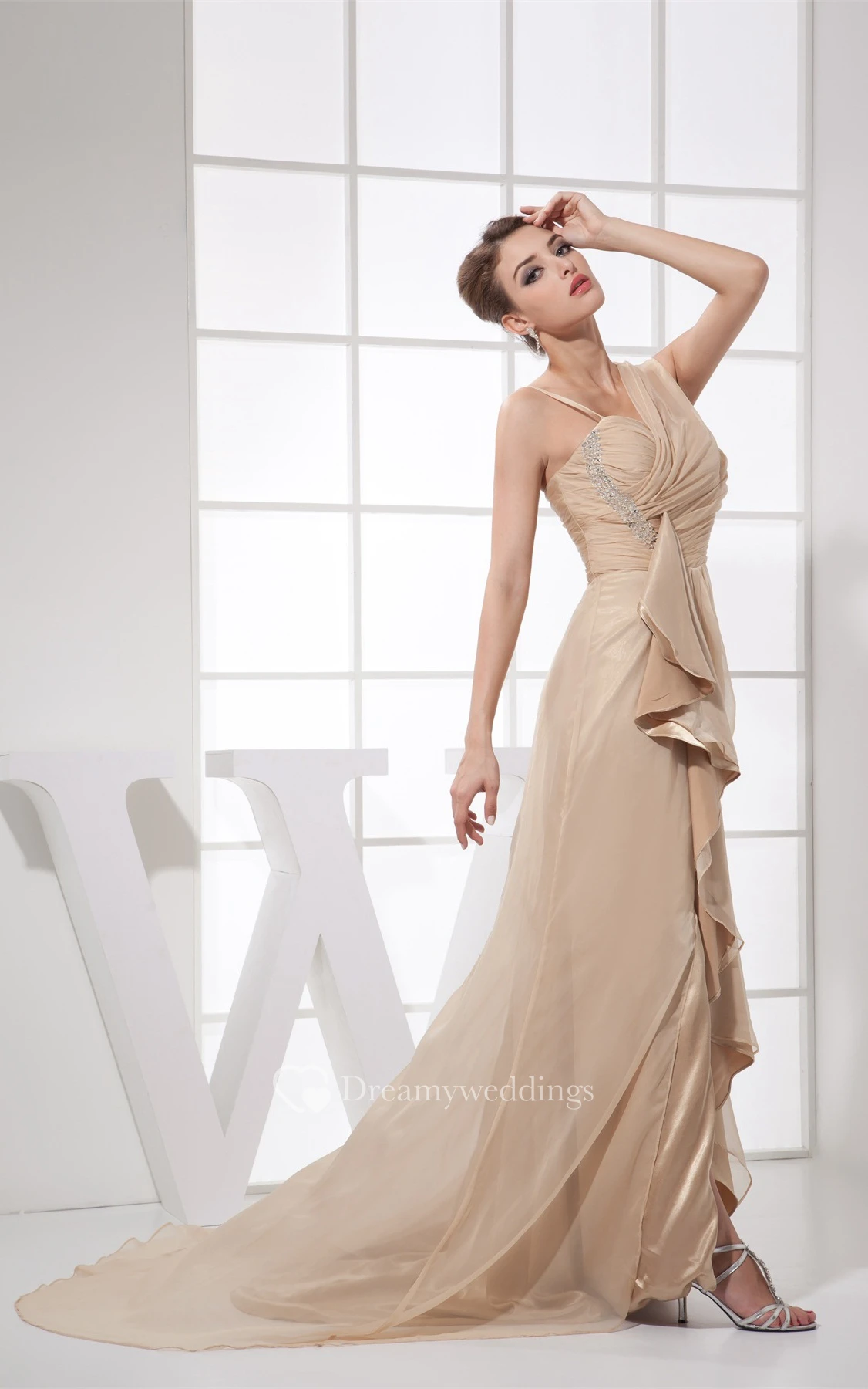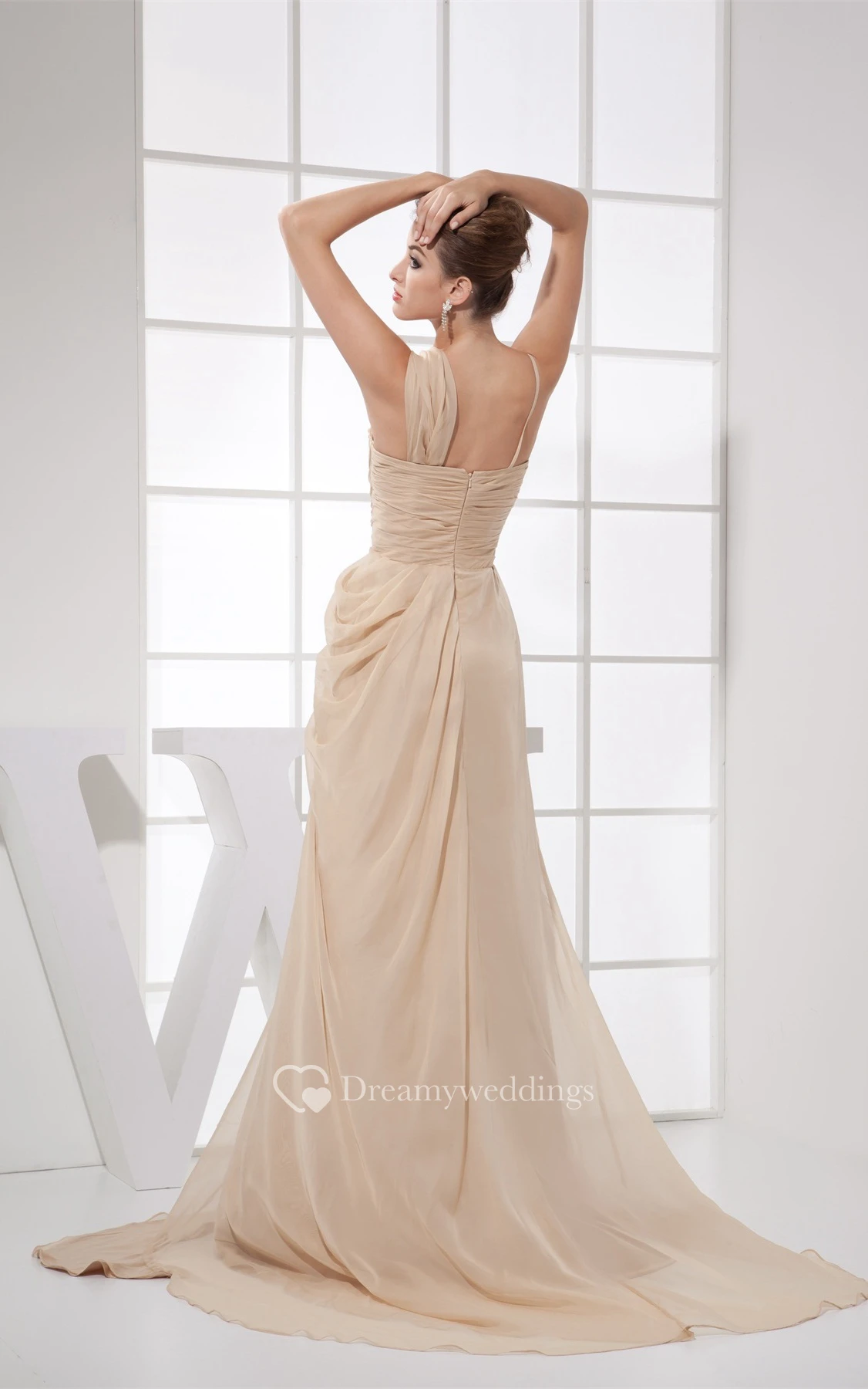 Asymmetrical Floor-Length Ruched Sweep Train and Gown With Draping