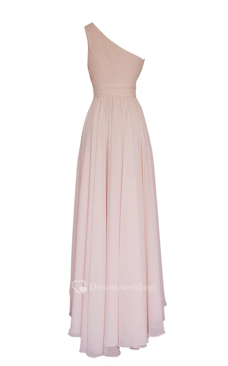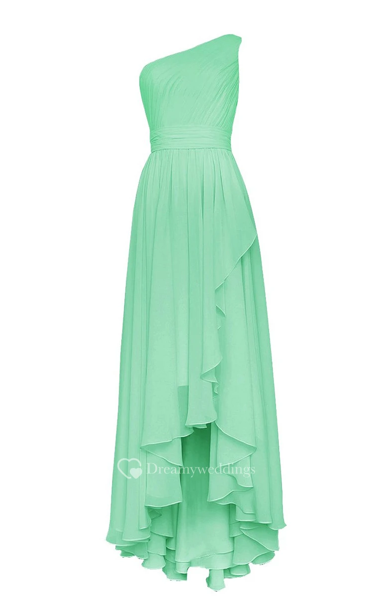 Asymmetrical One-shoulder Pleated A-line Dress With Ruched Band