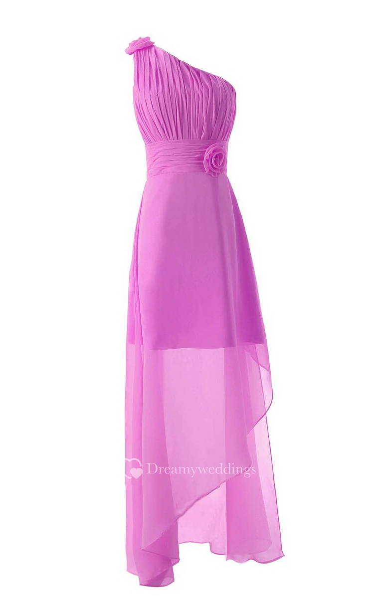 Asymmetrical One-shoulder Pleated A-line Gown With Flowers