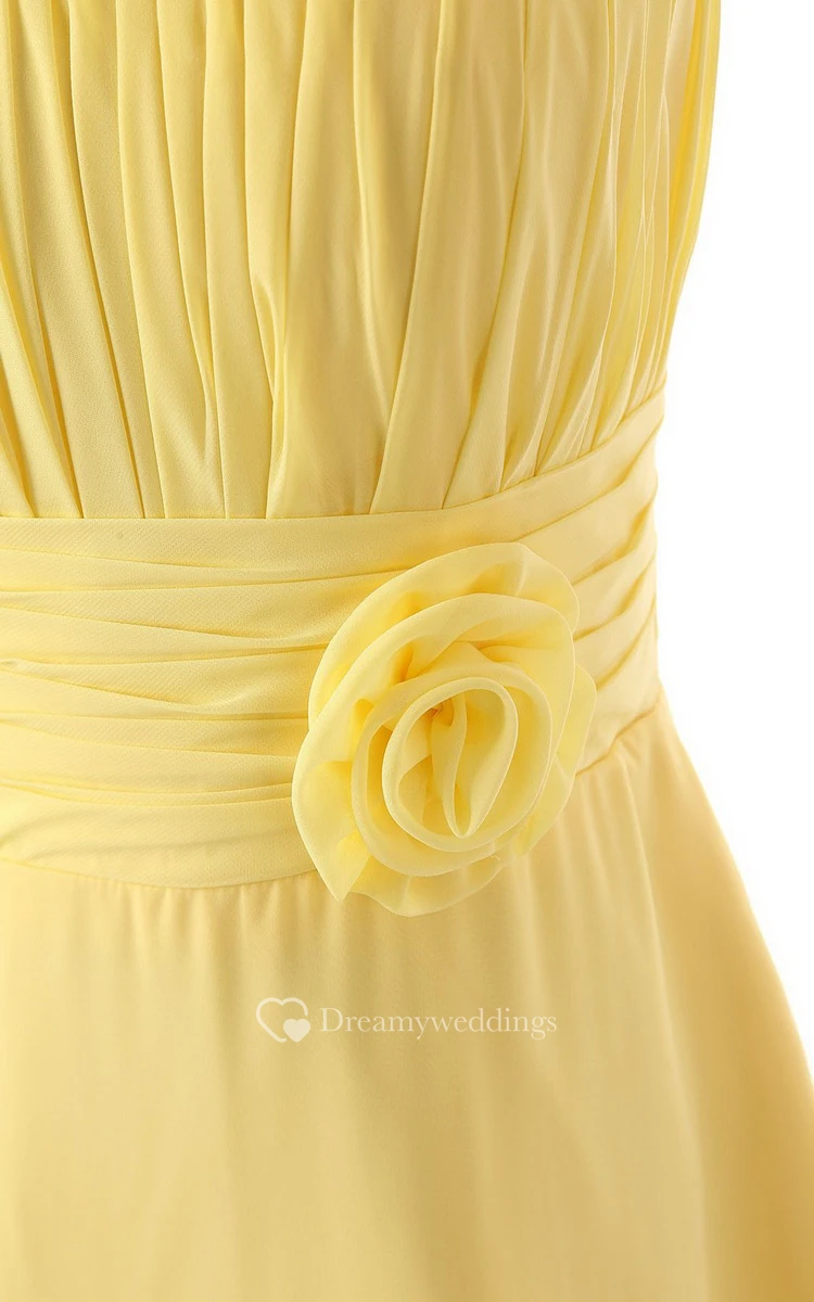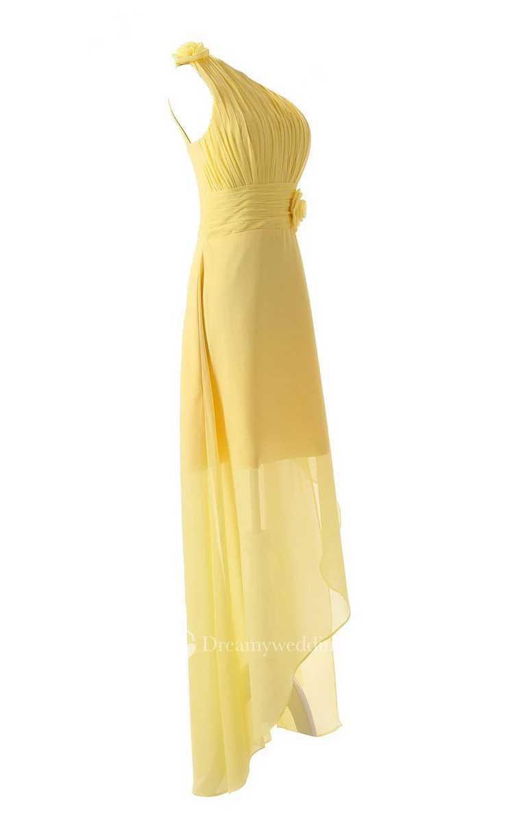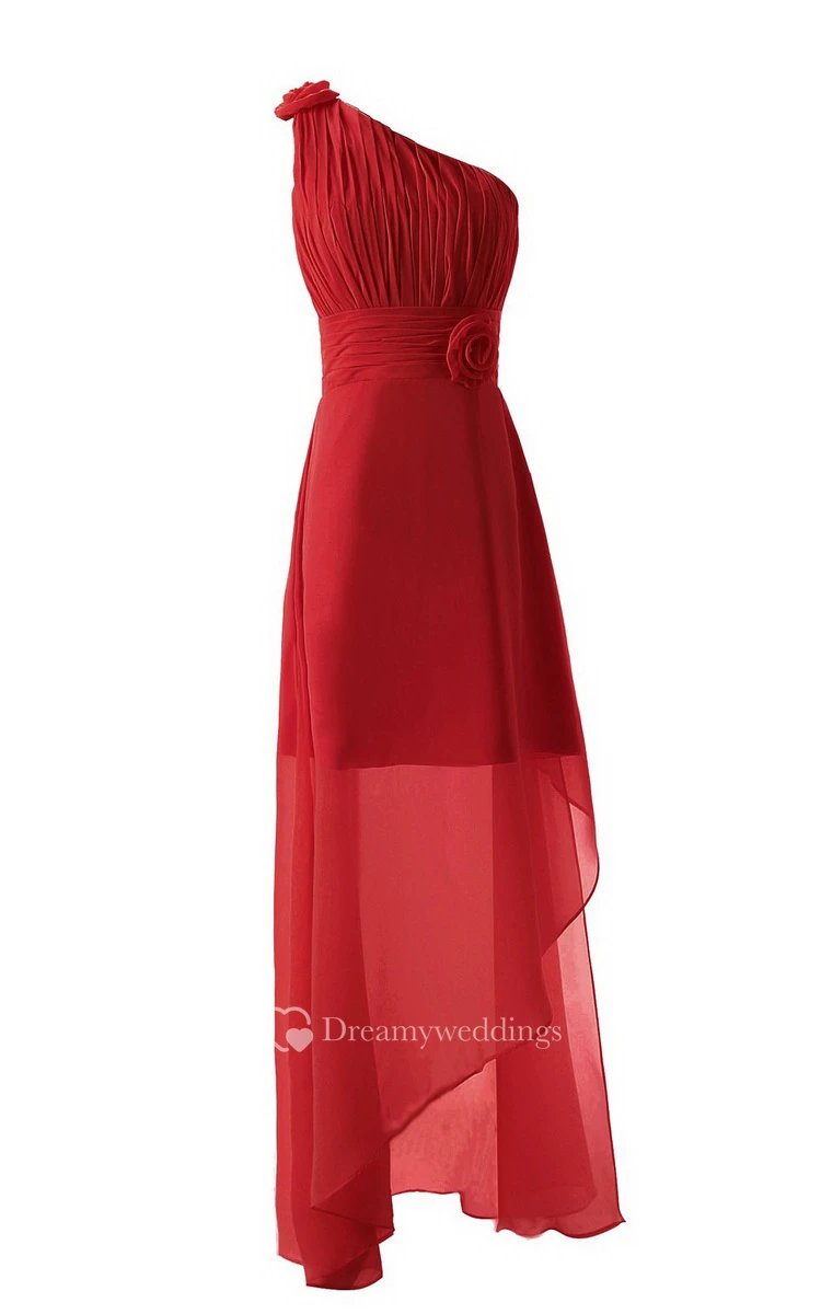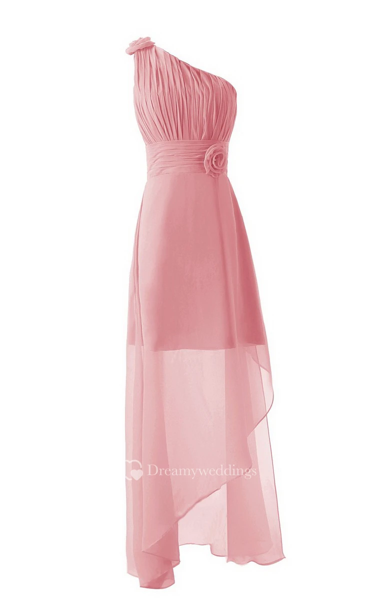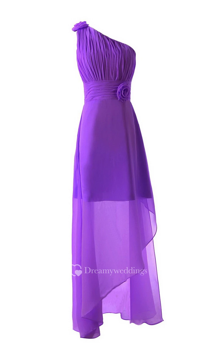 Asymmetrical One-shoulder Pleated Chiffon A-line Dress With Flowers