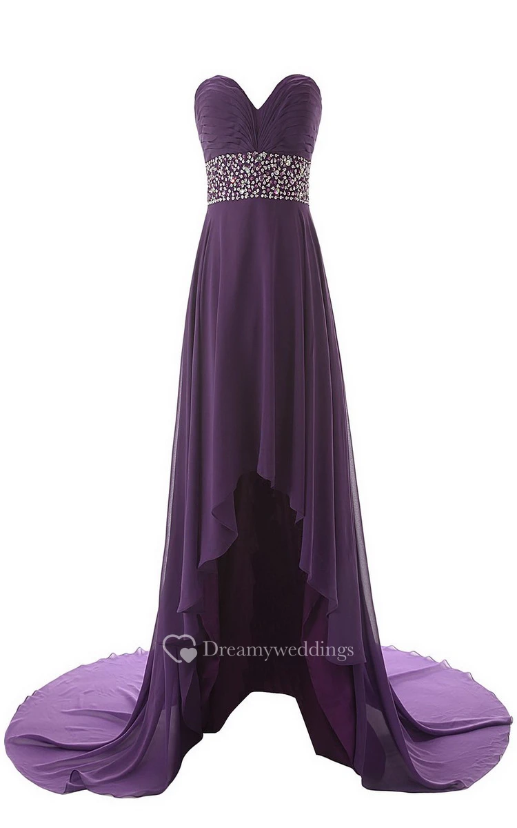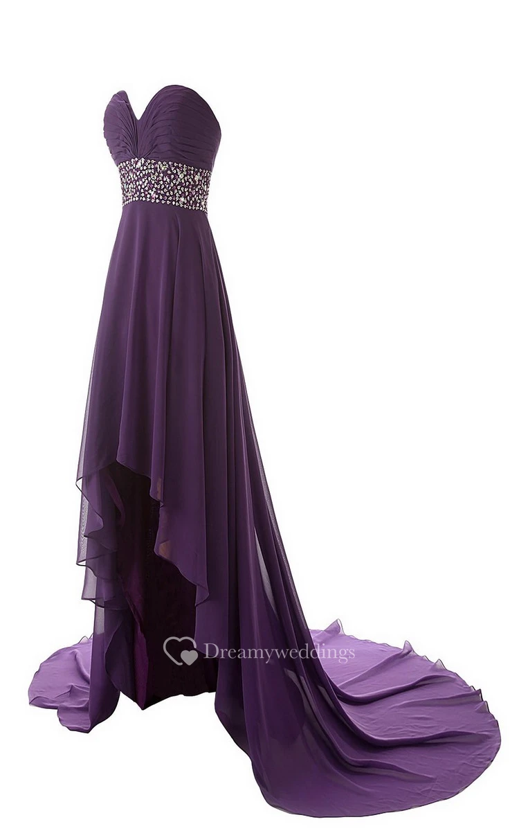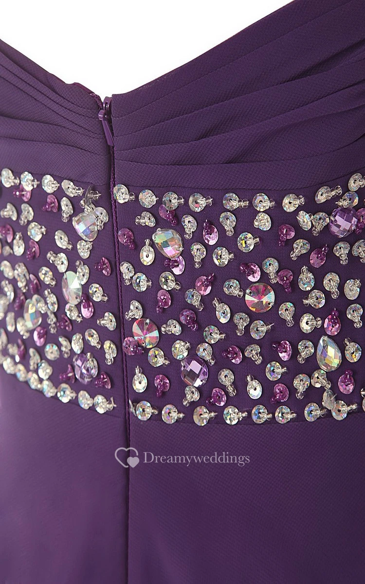 Asymmetrical Sweetheart Ruched A-line Dress With Crystal-beaded Band
