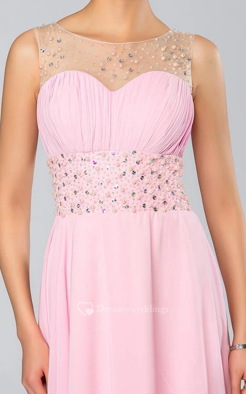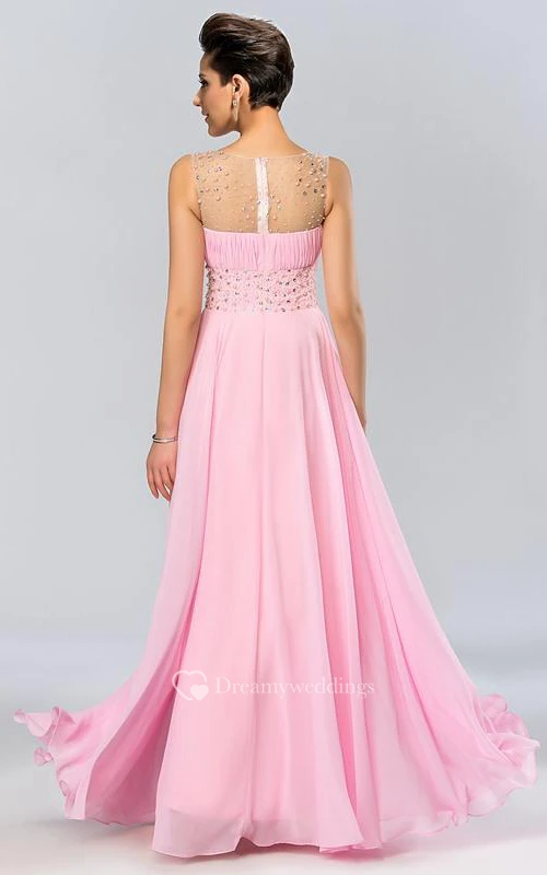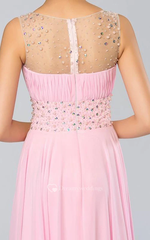 Attractive Bateau Beading Pearls A-Line Split-Front Long Prom Dress