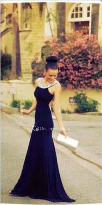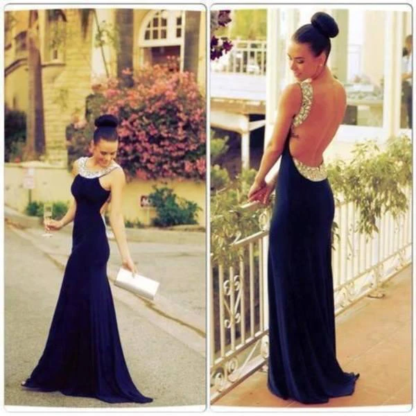Backless Long Chiffon Prom Dress Beadings