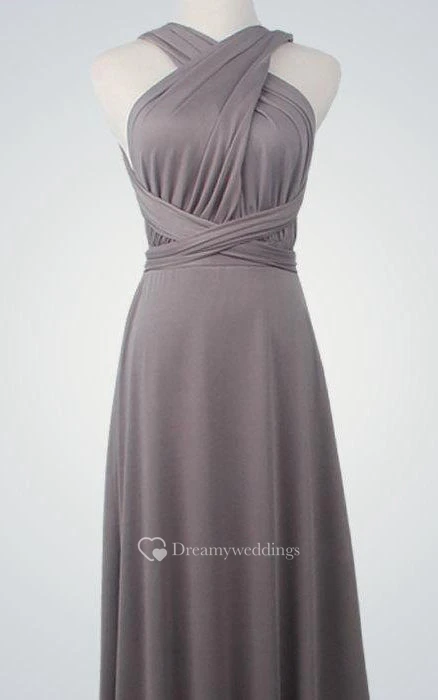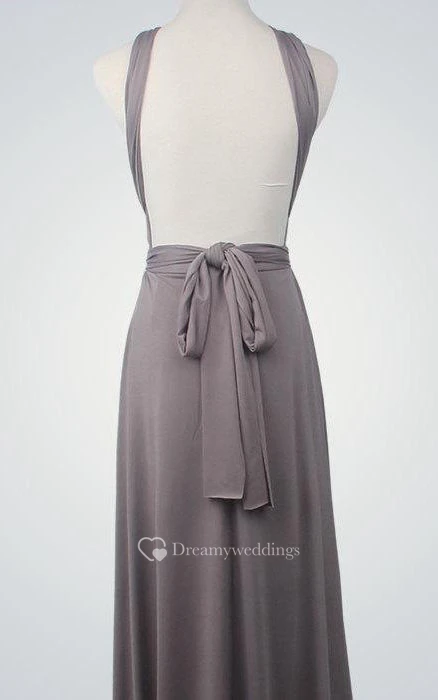 Backless Straped V Neck A-line Jersey Long Dress With Sash Silver