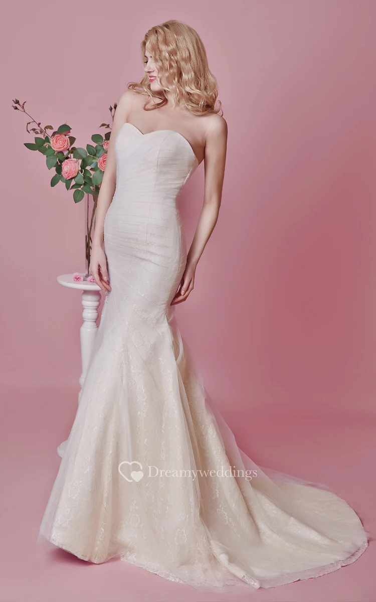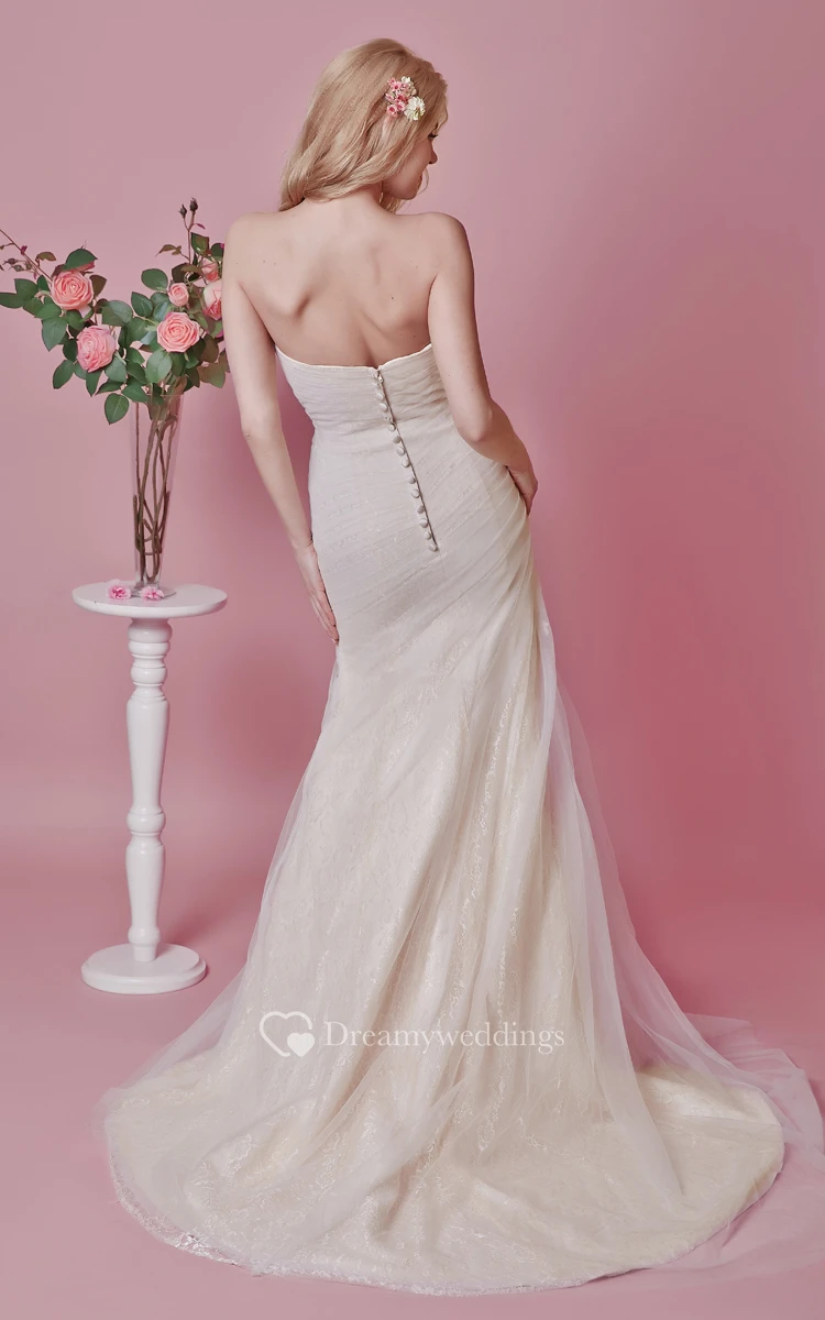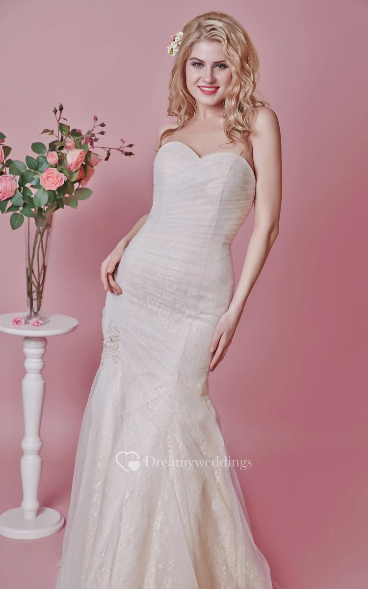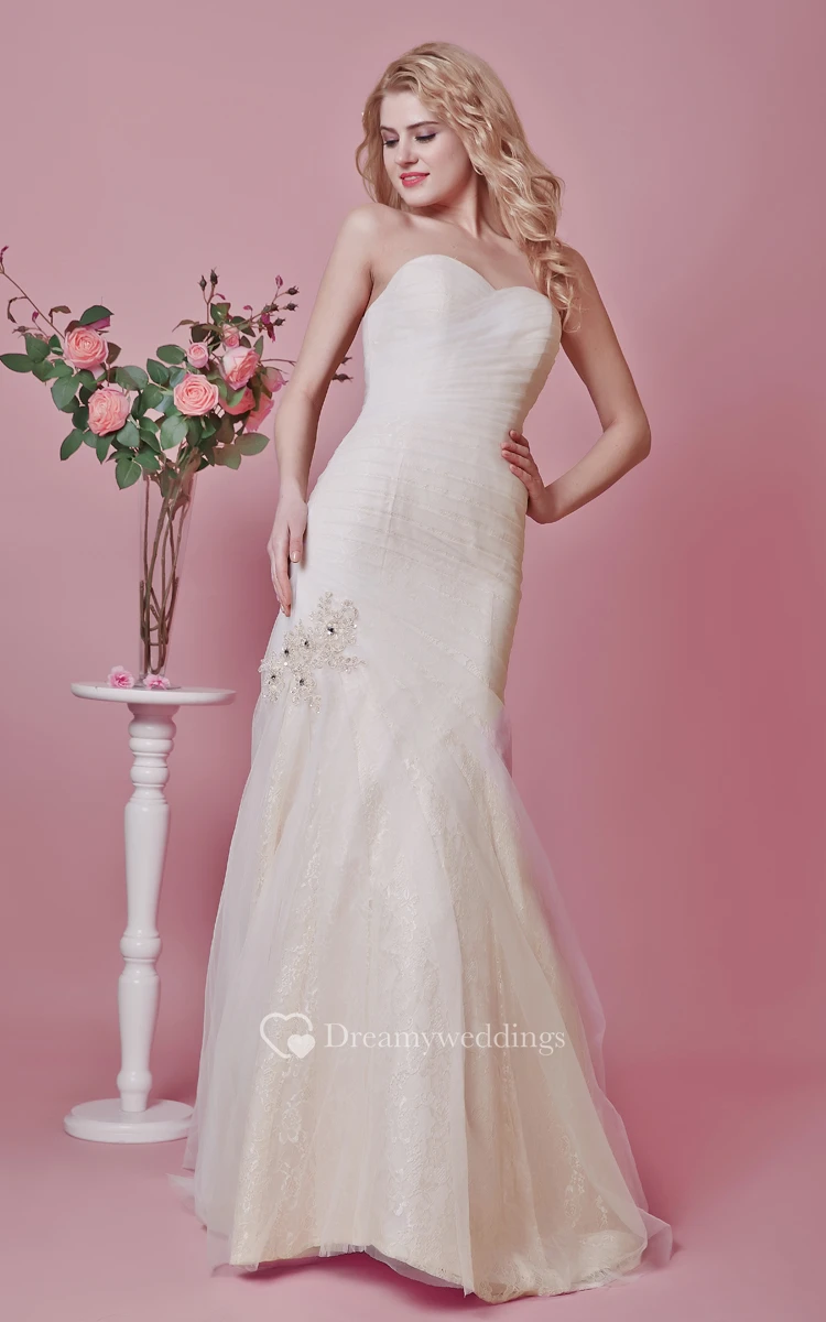 Backless Strapless Appliqued Mermaid Tulle Dress