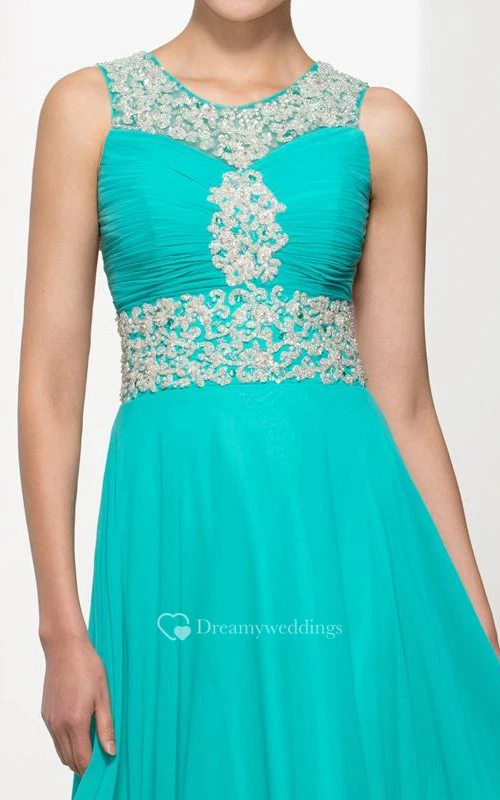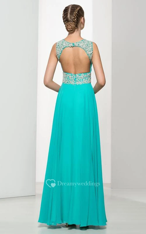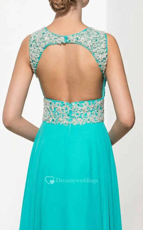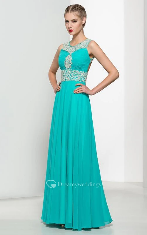 Backless Straps Beading Pleats Long Prom Dress