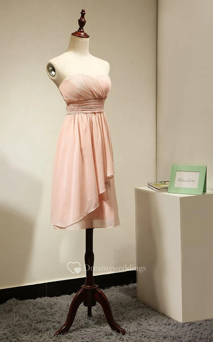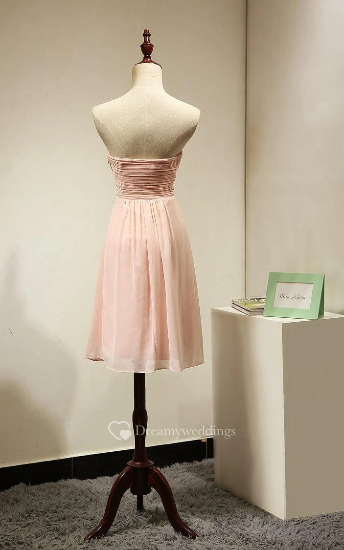Backless Sweetheart Side Dropped A-line Chiffon Short Dress Peach