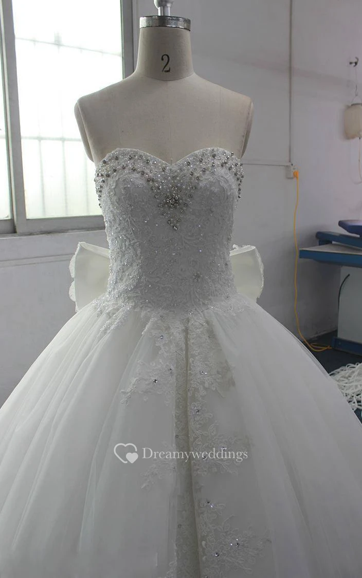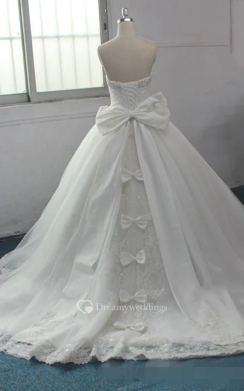 Ball Gown Bell Bow Beading Appliques Court Train Backless Zipper Corset Back Chiffon Lace Sequins Organza Satin Taffeta Dress