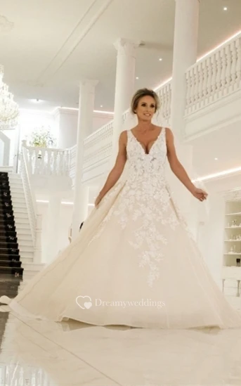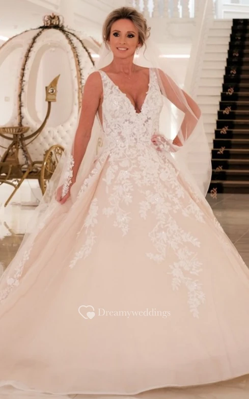 Ball Gown Ethereal Tulle V-neck Wedding Dress with Appliques