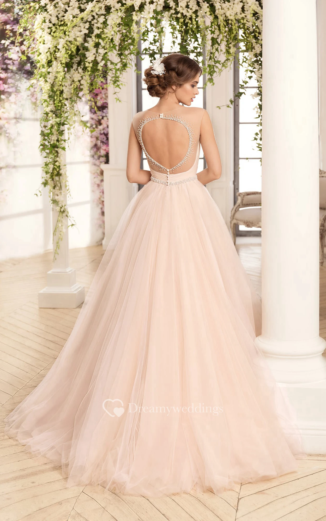 Ball Gown Floor-Length Scoop Sleeveless Keyhole Tulle Dress With Criss Cross And Beading
