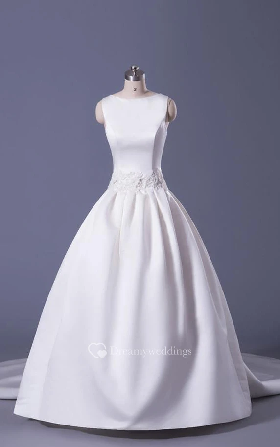 Ball Gown Floor-Length Sleeveless Lace Satin Dress