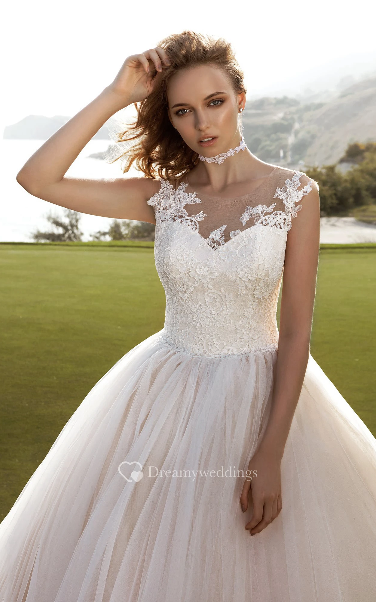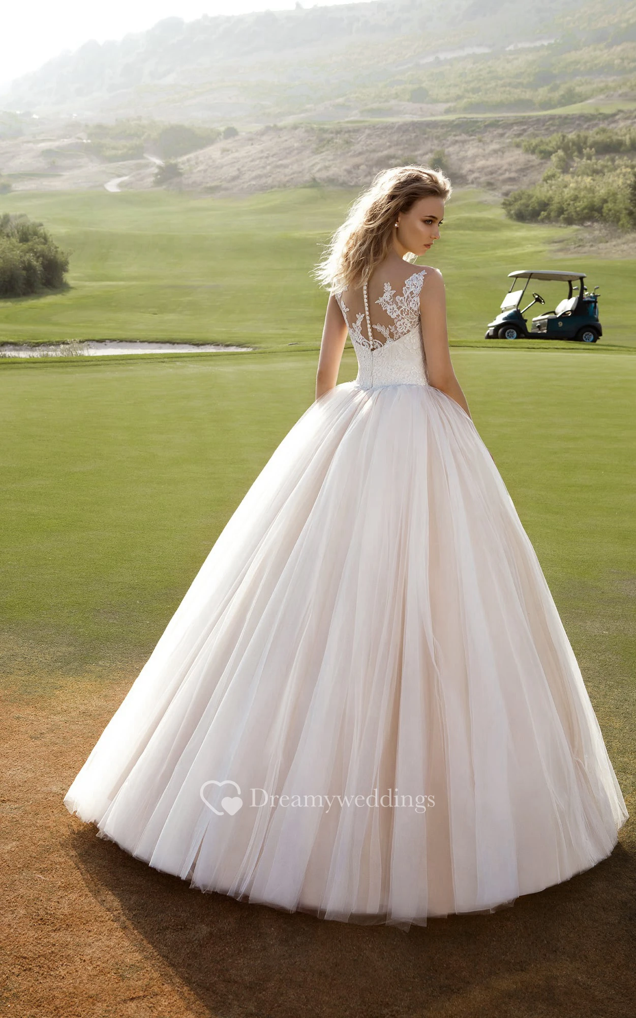 Ball Gown Floor-length V-neck Illusion Back Appliques Tulle Dress