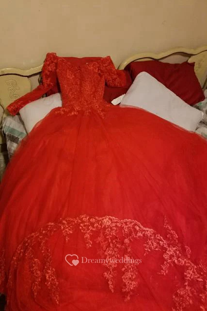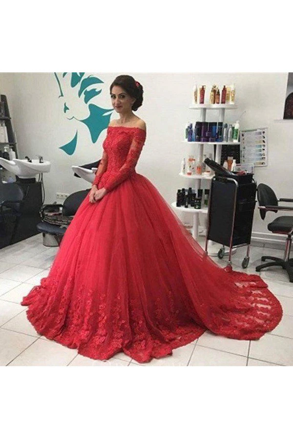 Ball Gown Lace Tulle Off-the-shoulder Long Sleeve Zipper Dress