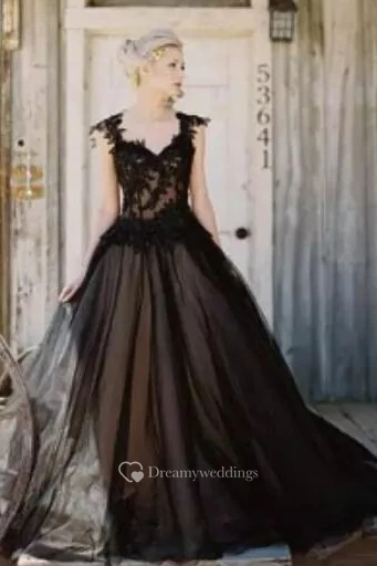 Ball Gown Lace Tulle Straps Sleeveless Floor-length Wedding Dress with Appliques and Beading