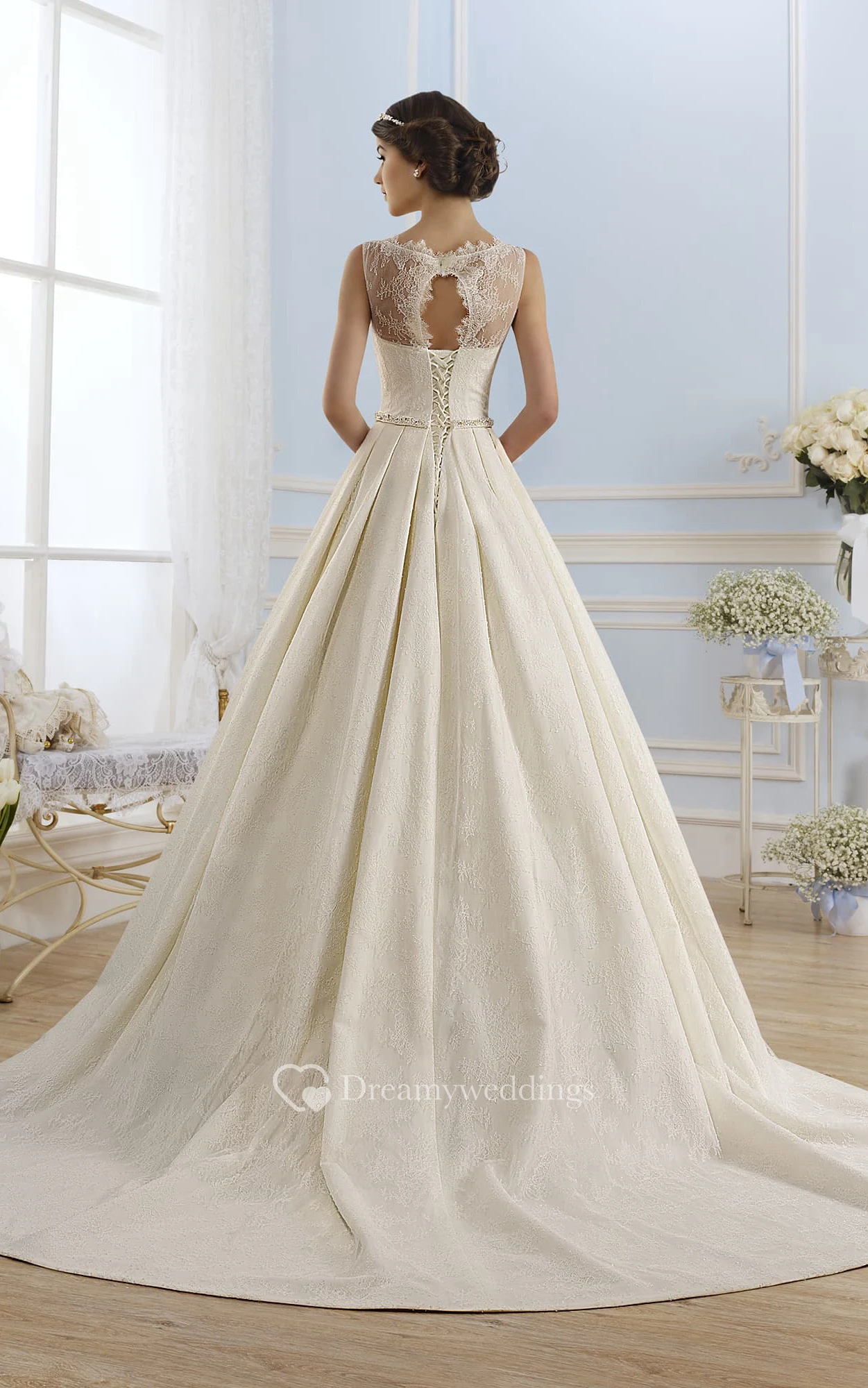 Ball Gown Long Bateau Sleeveless Keyhole Lace Dress With Waist Jewellery