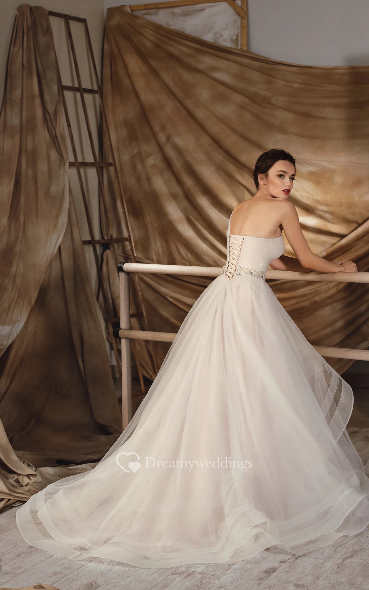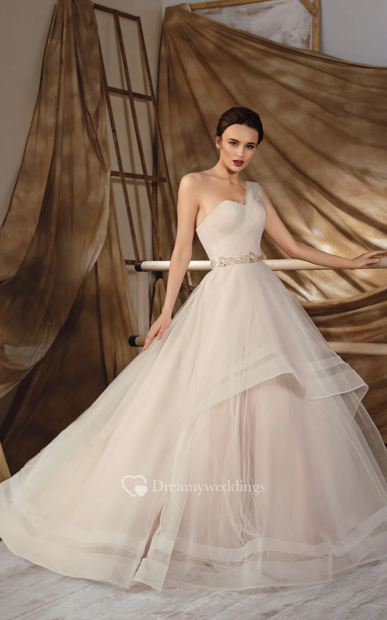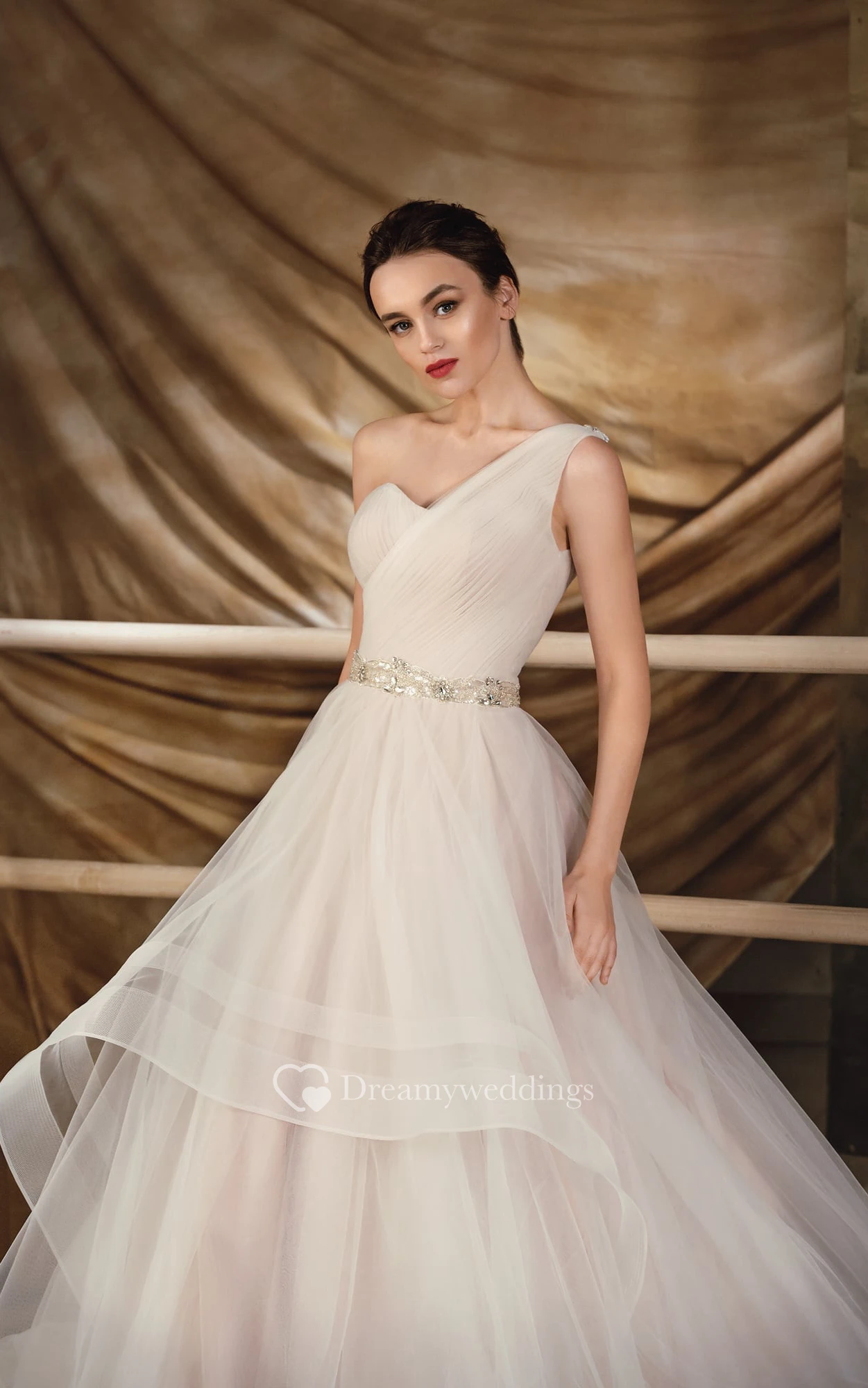 Ball Gown Long One-Shoulder Sleeveless Lace-Up Chiffon Dress With Ruching And Waist Jewellery