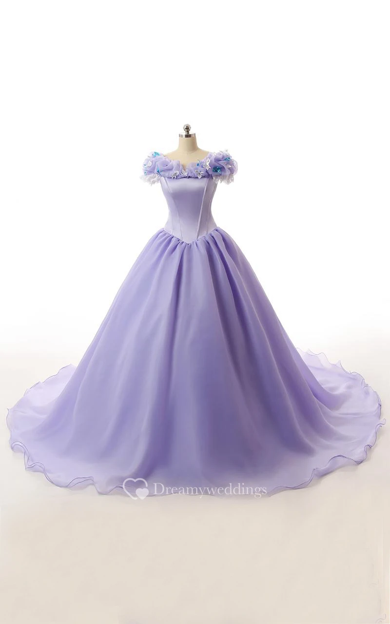 Ball Gown Long Ruffles Lace-Up Back Lace Organza Satin Dress