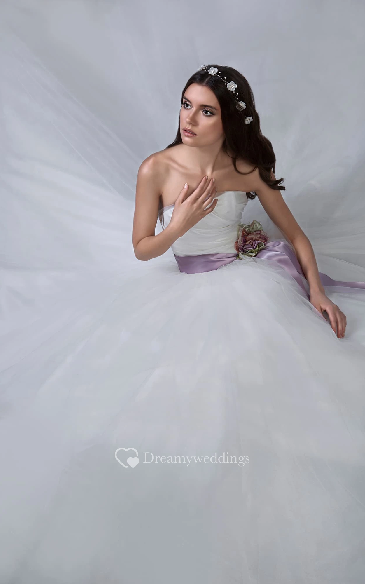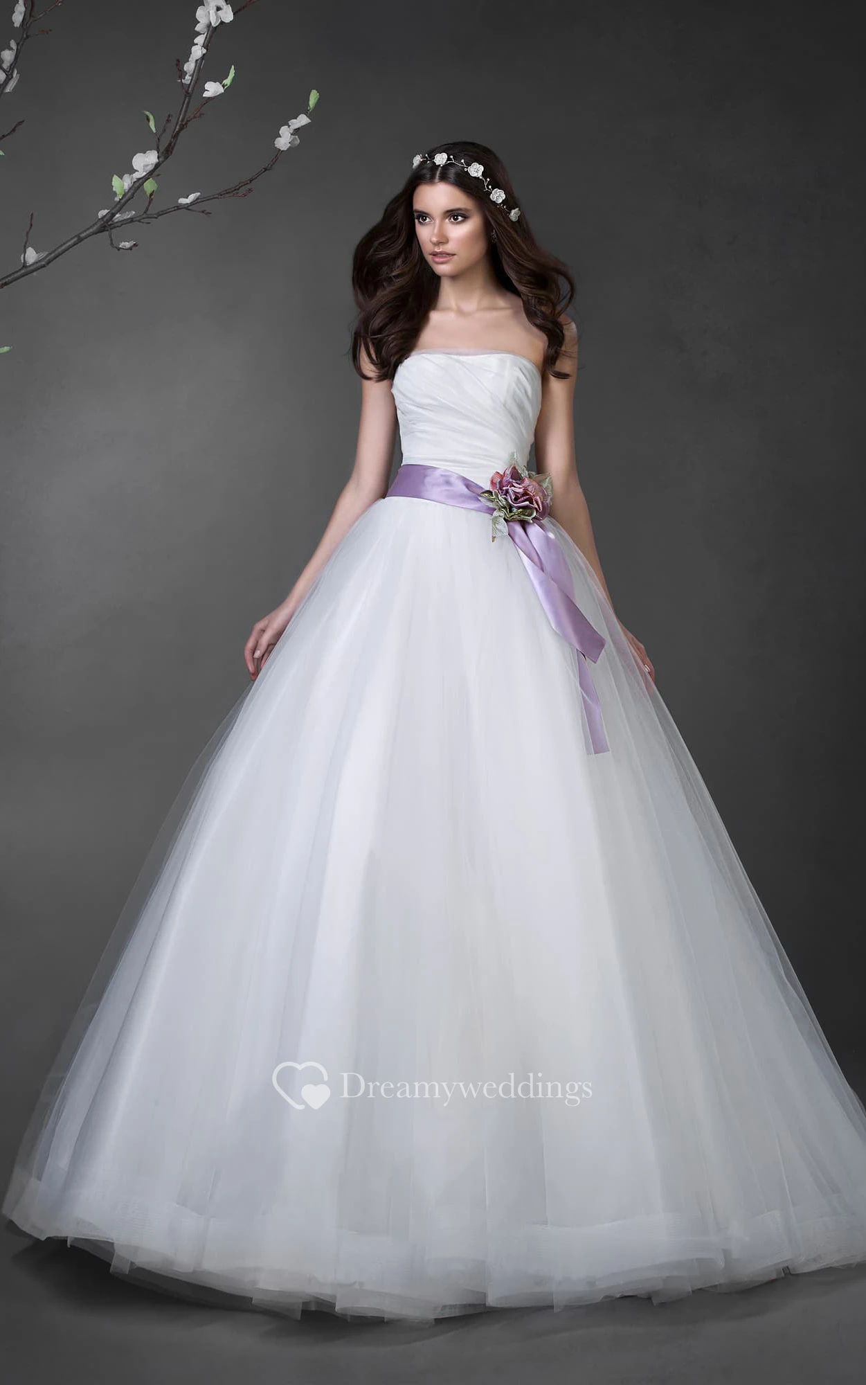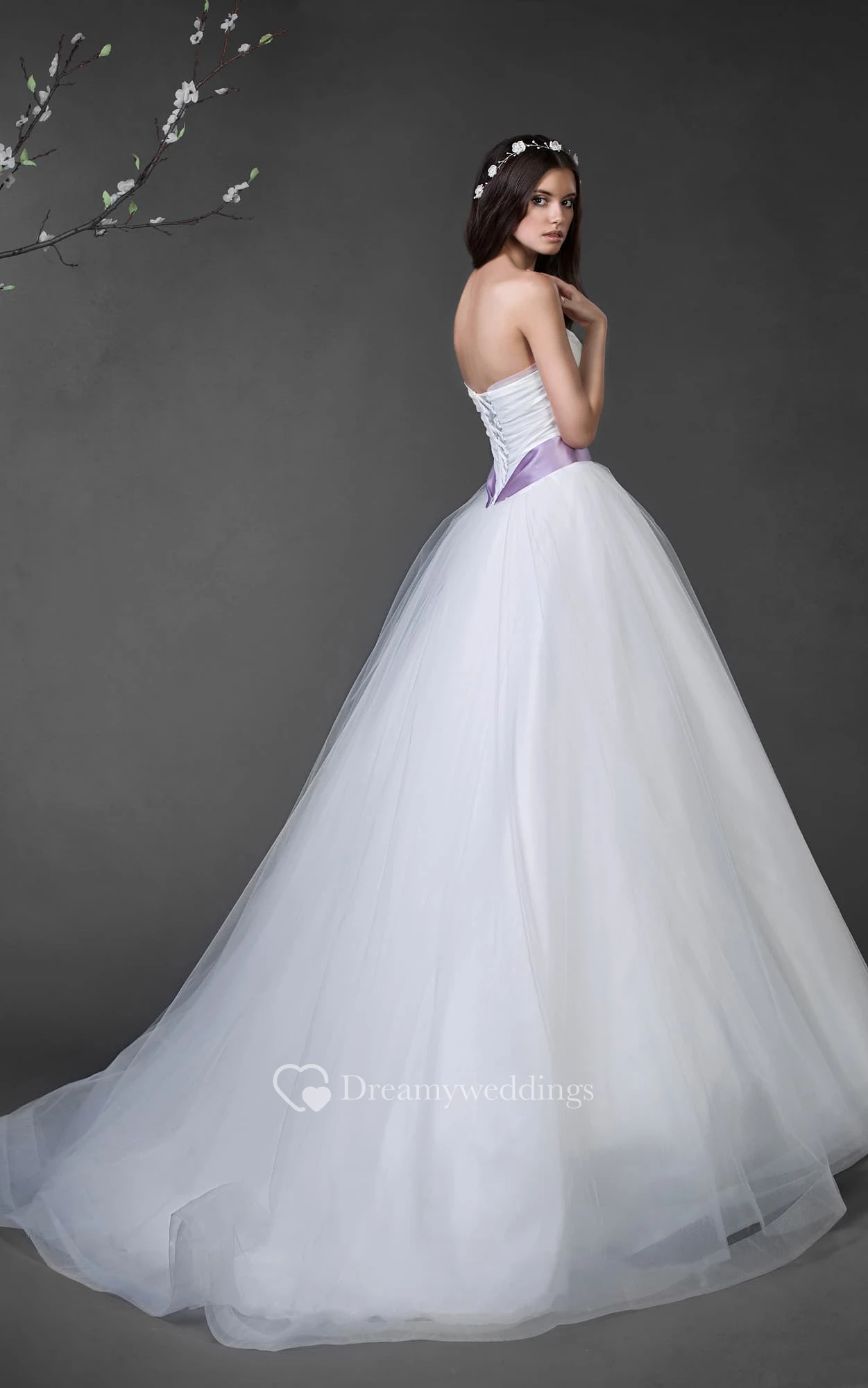 Ball Gown Long Strapless Sleeveless Lace-Up Tulle Dress With Ruching And Flower